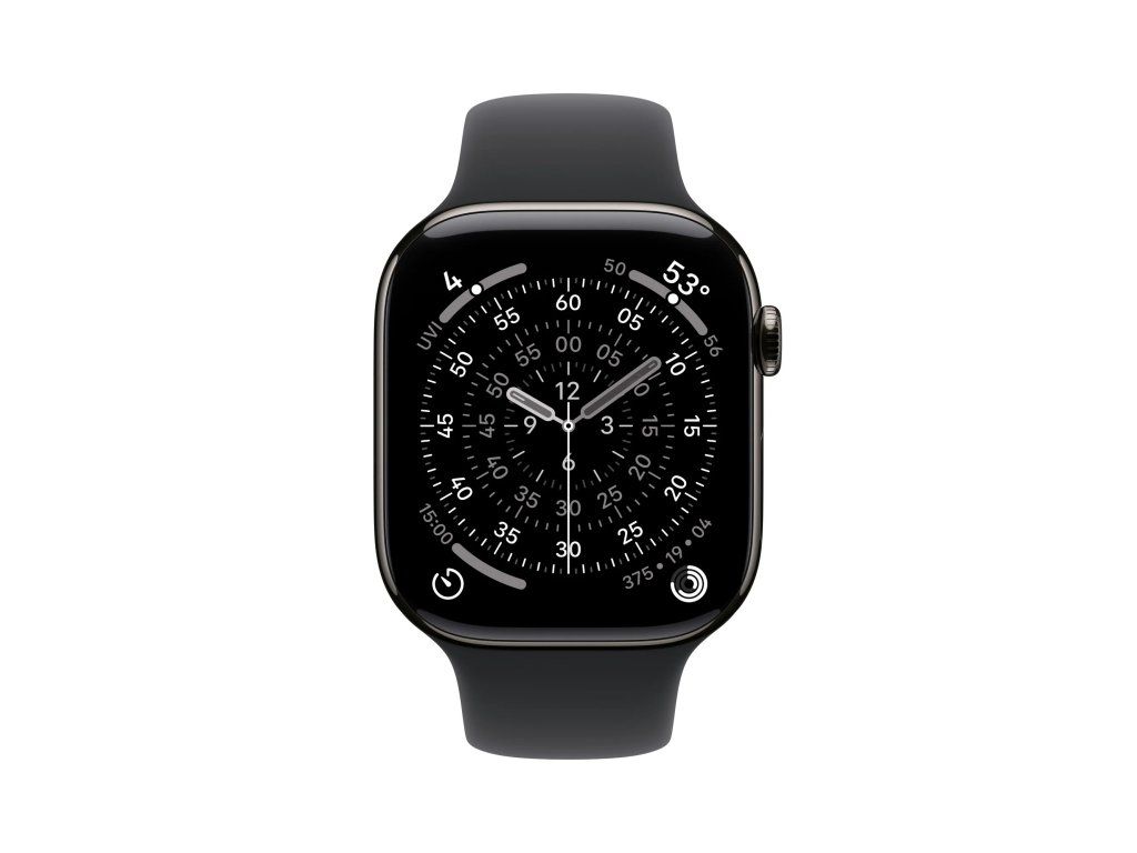 Apple Watch Series 11 Cellular Sport Band břidlicově šedé/černé S/M * pro zápěstí s obvodem 140–245 mm * korunka Digital Crown s haptickou odezvou * reproduktor/mikrofon Operační systém: watchOS Displej: stále zapnutý LTPO3 OLED Retina, 416×496 pixelů, 1220 mm2, 326 ppi, 1/2000 nitů Čip: * S10 s 64bitovým dvoujádrovým procesorem * 4jádrový Neural Engine * 64 GB Připojení: * GPS L1, GLONASS, Galileo, QZSS a BeiDou * LTE a UMTS * Wi-Fi 4 (802.11n) * podpora 2,4GHz a 5GHz Wi-Fi sítí * Bluetooth 5.3 * NFC: Apple Pay, GymKit Snímače: * elektrický snímač srdeční činnosti * třetí generace optického snímače srdeční činnosti * saturace kyslíkem * teploty * hloubkoměr do 6 m * teploty vody * kompas * stále aktivní výškoměr * akcelerometr snímající vysoké přetížení * gyroskop s vysokým dynamickým rozsahem * okolního osvětlení Voděodolnost: do 50 m (pro plavání) Odolnost proti prachu: IP6X Funkce: * aplikace Saturace kyslíkem * aplikace EKG * aplikace Sledování cyklu se zpětným odhadem doby ovulace * aplikace Srdeční tep * oznámení o vysoké a nízké tepové frekvenci * oznámení o nepravidelném srdečním rytmu * aplikace Léky * aplikace Všímavost se zaznamenáváním stavu mysli * aplikace Hluk * aplikace Spánek se sledováním fází spánku * spánkové skóre * upozorňování na spánkovou apnoi * oznámení o hypertenzi * tíseň SOS * mezinárodní tísňové volání * detekce autonehody * detekce pádu * monitorování hluku Kompatibilita: iPhone 11 a novější, včetně iPhonu SE (2. generace a novější) s iOS 26 nebo novějším Napájení: vestavěná dobíjecí lithium-iontová, podpora rychlonabíjení, až 24 hodin běžného používání Materiál pouzdra: titan Rozměry: 46x39x9,7mm Hmotnost: 43,1g Obsah balení: * Apple Watch Series 11 * řemínek * magnetická rychlonabíječka Apple Watch s USB-C kabelem (1m)Dodatočné parametre