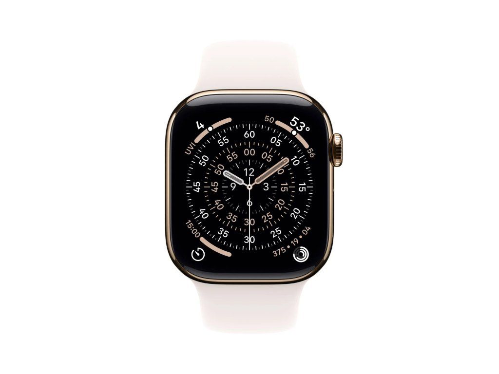 Apple Watch Series 11 Cellular Sport Band růžově zlaté/světleruměné S/M * pro zápěstí s obvodem 140–245 mm * korunka Digital Crown s haptickou odezvou * reproduktor/mikrofon Operační systém: watchOS Displej: stále zapnutý LTPO3 OLED Retina, 416×496 pixelů, 1220 mm2, 326 ppi, 1/2000 nitů Čip: * S10 s 64bitovým dvoujádrovým procesorem * 4jádrový Neural Engine * 64 GB Připojení: * GPS L1, GLONASS, Galileo, QZSS a BeiDou * LTE a UMTS * Wi-Fi 4 (802.11n) * podpora 2,4GHz a 5GHz Wi-Fi sítí * Bluetooth 5.3 * NFC: Apple Pay, GymKit Snímače: * elektrický snímač srdeční činnosti * třetí generace optického snímače srdeční činnosti * saturace kyslíkem * teploty * hloubkoměr do 6 m * teploty vody * kompas * stále aktivní výškoměr * akcelerometr snímající vysoké přetížení * gyroskop s vysokým dynamickým rozsahem * okolního osvětlení Voděodolnost: do 50 m (pro plavání) Odolnost proti prachu: IP6X Funkce: * aplikace Saturace kyslíkem * aplikace EKG * aplikace Sledování cyklu se zpětným odhadem doby ovulace * aplikace Srdeční tep * oznámení o vysoké a nízké tepové frekvenci * oznámení o nepravidelném srdečním rytmu * aplikace Léky * aplikace Všímavost se zaznamenáváním stavu mysli * aplikace Hluk * aplikace Spánek se sledováním fází spánku * spánkové skóre * upozorňování na spánkovou apnoi * oznámení o hypertenzi * tíseň SOS * mezinárodní tísňové volání * detekce autonehody * detekce pádu * monitorování hluku Kompatibilita: iPhone 11 a novější, včetně iPhonu SE (2. generace a novější) s iOS 26 nebo novějším Napájení: vestavěná dobíjecí lithium-iontová, podpora rychlonabíjení, až 24 hodin běžného používání Materiál pouzdra: titan Rozměry: 46x39x9,7mm Hmotnost: 43,1g Obsah balení: * Apple Watch Series 11 * řemínek * magnetická rychlonabíječka Apple Watch s USB-C kabelem (1m)Dodatočné parametre