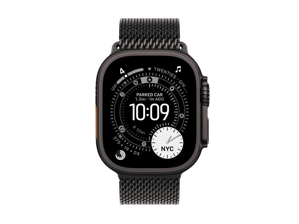 Apple Watch Ultra 3 Milanese Loop černě titanové S * pro zápěstí s obvodem 130–210 mm * korunka Digital Crown s haptickou odezvou * 2x reproduktor/3x mikrofon * MIL-STD 810H Operační systém: watchOS Displej: stále zapnutý LTPO3 OLED Retina, 422×514 pixelů, 1245mm2, 326 ppi, 1/3000 nitů, obnovovací frekvence 1 Hz, noční režim Čip: * S10 s 64bitovým dvoujádrovým procesorem * 4jádrový Neural Engine * 64 GB Připojení: * dvoufrekvenční GPS L1 a L5 (GPS, GLONASS, Galileo, QZSS a BeiDou) * LTE a UMTS * Wi-Fi 4 (802.11n) * podpora 2,4GHz a 5GHz Wi-Fi sítí * Bluetooth 5.3 * NFC: Apple Pay, GymKit Snímače: * elektrický snímač srdeční činnosti * třetí generace optického snímače srdeční činnosti * saturace kyslíkem * teploty * hloubkoměr * teploty vody * kompas * stále aktivní výškoměr * akcelerometr snímající vysoké přetížení * gyroskop s vysokým dynamickým rozsahem * okolního osvětlení Voděodolnost: do 100 m (pro plavání, šnorchlování, přístrojové potápění - vyhovuje požadavkům normy EN13319 pro rekreační potápění do 40 m, a vysokorychlostní vodní sporty) Funkce: * aplikace Saturace kyslíkem * aplikace EKG * aplikace Sledování cyklu se zpětným odhadem doby ovulace * aplikace Srdeční tep * oznámení o vysoké a nízké tepové frekvenci * oznámení o nepravidelném srdečním rytmu * aplikace Léky * aplikace Všímavost se zaznamenáváním stavu mysli * aplikace Hluk * aplikace Spánek se sledováním fází spánku * spánkové skóre * upozorňování na spánkovou apnoi * oznámení o hypertenzi * tíseň SOS * mezinárodní tísňové volání * siréna * svítilna * detekce autonehody * detekce pádu * bod posledního místa s dostupností tísňového volání * monitorování hluku Kompatibilita: iPhone 11 a novější, včetně iPhonu SE (2. generace a novější) s iOS 26 nebo novějším Napájení: vestavěná dobíjecí lithium-iontová, podpora rychlonabíjení, až 42 hodin běžného používání Materiál pouzdra: titan třídy 5 Rozměry: 49x44x12mm Hmotnost: 61,8g Obsah balení: * Apple Watch Ultra 3 * řemínek * magnetická rychlonabíječka Apple Watch s USB-C kabelem (1m)Dodatočné parametre