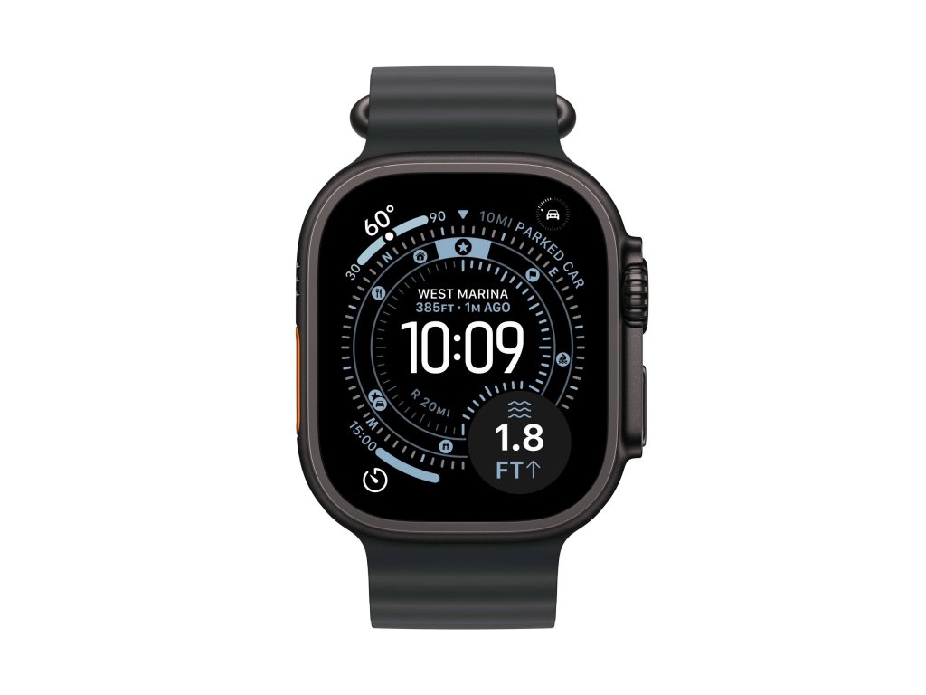 Apple Watch Ultra 3 Ocean Band černé * pro zápěstí s obvodem 130–210 mm * korunka Digital Crown s haptickou odezvou * 2x reproduktor/3x mikrofon * MIL-STD 810H Operační systém: watchOS Displej: stále zapnutý LTPO3 OLED Retina, 422×514 pixelů, 1245mm2, 326 ppi, 1/3000 nitů, obnovovací frekvence 1 Hz, noční režim Čip: * S10 s 64bitovým dvoujádrovým procesorem * 4jádrový Neural Engine * 64 GB Připojení: * dvoufrekvenční GPS L1 a L5 (GPS, GLONASS, Galileo, QZSS a BeiDou) * LTE a UMTS * Wi-Fi 4 (802.11n) * podpora 2,4GHz a 5GHz Wi-Fi sítí * Bluetooth 5.3 * NFC: Apple Pay, GymKit Snímače: * elektrický snímač srdeční činnosti * třetí generace optického snímače srdeční činnosti * saturace kyslíkem * teploty * hloubkoměr * teploty vody * kompas * stále aktivní výškoměr * akcelerometr snímající vysoké přetížení * gyroskop s vysokým dynamickým rozsahem * okolního osvětlení Voděodolnost: do 100 m (pro plavání, šnorchlování, přístrojové potápění - vyhovuje požadavkům normy EN13319 pro rekreační potápění do 40 m, a vysokorychlostní vodní sporty) Funkce: * aplikace Saturace kyslíkem * aplikace EKG * aplikace Sledování cyklu se zpětným odhadem doby ovulace * aplikace Srdeční tep * oznámení o vysoké a nízké tepové frekvenci * oznámení o nepravidelném srdečním rytmu * aplikace Léky * aplikace Všímavost se zaznamenáváním stavu mysli * aplikace Hluk * aplikace Spánek se sledováním fází spánku * spánkové skóre * upozorňování na spánkovou apnoi * oznámení o hypertenzi * tíseň SOS * mezinárodní tísňové volání * siréna * svítilna * detekce autonehody * detekce pádu * bod posledního místa s dostupností tísňového volání * monitorování hluku Kompatibilita: iPhone 11 a novější, včetně iPhonu SE (2. generace a novější) s iOS 26 nebo novějším Napájení: vestavěná dobíjecí lithium-iontová, podpora rychlonabíjení, až 42 hodin běžného používání Materiál pouzdra: titan třídy 5 Rozměry: 49x44x12mm Hmotnost: 61,8g Obsah balení: * Apple Watch Ultra 3 * řemínek * magnetická rychlonabíječka Apple Watch s USB-C kabelem (1m)Dodatočné parametre