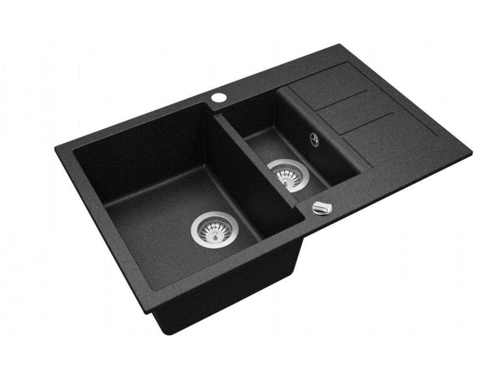 - granitový drez s odkvapom a druhou menšou vaničkou, s excentrickým ovládaním