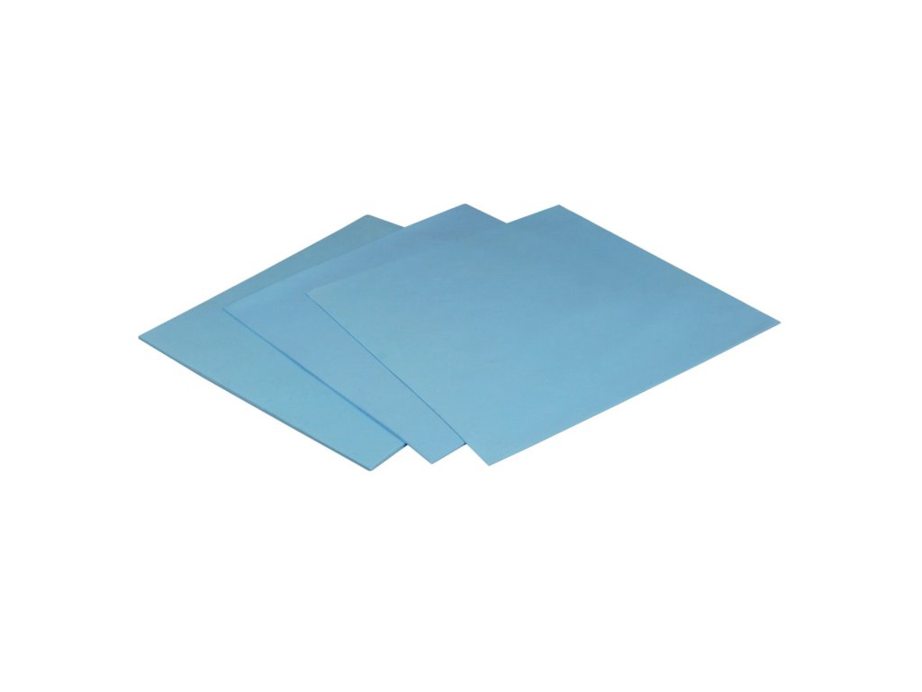 Efektivní tepelná vodivost. Materiál na bázi křemíku použití u této chladící podložky předčí běžné podložky tím, že poskytuje optimální tepelné rozhraní mezi chladičem a elektronickým zařízením. Vyplňování mezer. Vzhledem k velké pružnosti funguje tato tepelná podložka jako dokonalý odstraňovač nedostatků a nerovnoměrností povrchu: Bez jakýchkoliv problémů vyplňuje přesně vzduchové mezery a hrubý povrch. Snadno se nanáší. Instalace chladicí podložka je velmi snadná i pro začátečníky. Bezpečná manipulace. Podložka neobsahuje žádné kovové částice. Rozměry: 290x290 mm Tloušťka: 0,5 mm nebo 1,0 mm nebo 1,5 mm (podle modelu) Tepelná vodivost: 6,0 W / mK Tvrdost: 25 Shore 00 Specifická hmotnost: 3,2 g / cm3 Barva: Modrá Teplota: -40 - 200 °C Odpor: 1 x 1012 Ohm-cm Napětí: 12 kV / mm Pevnost v tahu: 2,5 Kgf / cm2 Prodloužení: 45% Dielektrická konstanta 14,1816? při 60 Hz 13,0264? při 1K Hz 13,0264? při 1M Hz UL Hořlavost V-0Dodatočné parametre