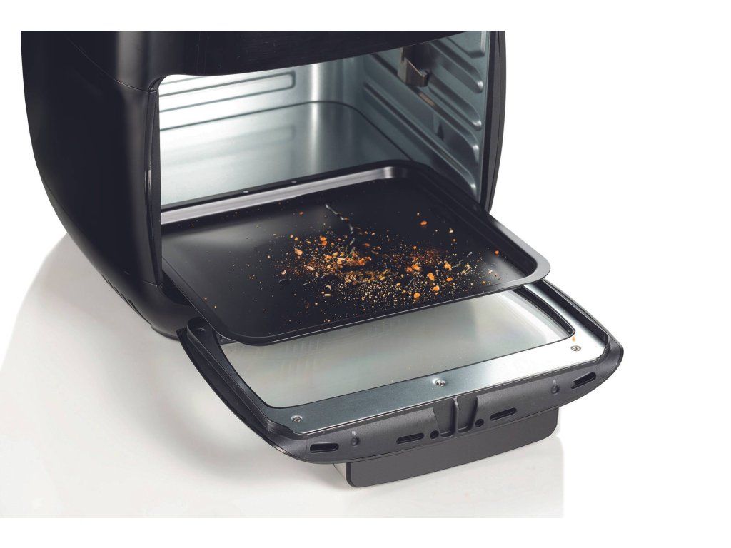 Ako vlastne teplovzdušná fritéza funguje? Horúci vzduch od 80 do 200 °C je vháňaný do rúry a rovnomerne obieha celým priestorom. Vďaka tomu, že je možné nastaviť teplotu a intenzitu úpravy jedál, môžete vo fritéze nielen fritovať, ale aj piecť obľúbené dezerty. Táto elektrická rúra je dostatočne priestranná na opekanie kurčaťa.