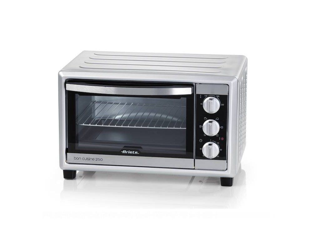 Máte malú kuchyňu, ale nechcete sa vzdať možnosti si doma upiecť niečo dobré? Elektrická teplovzdušná mini rúra Ariete Bon Cuisine 250 so zmenšeným objemom 25 litrov je dôkazom toho, že na veľké kulinárske zážitky nie je potrebná obrovská kuchyňa. Vďaka veľkému výkonu a možnosti pečenia od 90 až do 230 stupňov si doprajete pestrú škálu pokrmov od vianočných cukroviniek, cez bábovku až po výbornú šťavnatú pečienku. Mini rúra je vybavená časovačom na 60 minút a umožňuje vybrať si zo 6 funkcií pečenia.