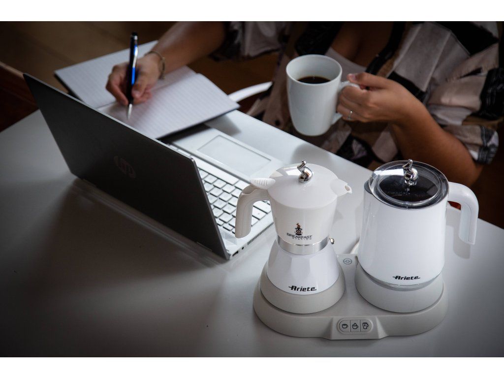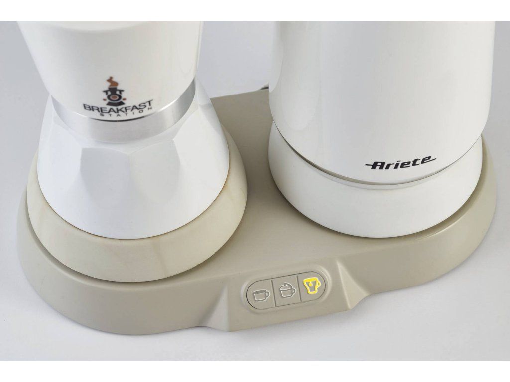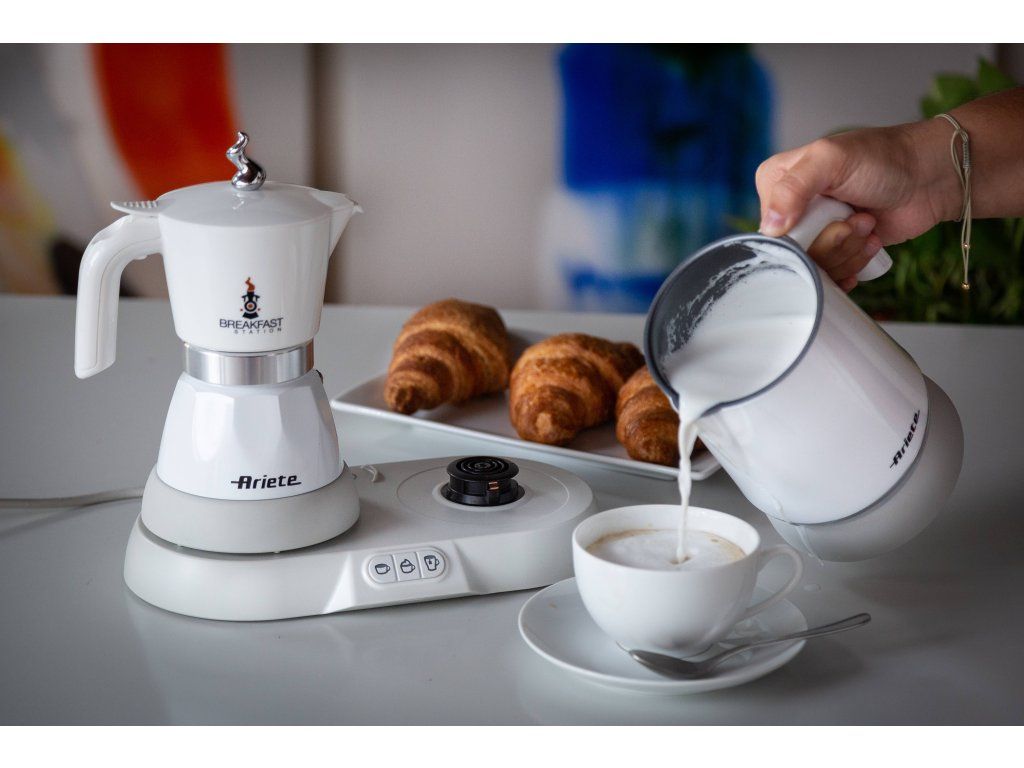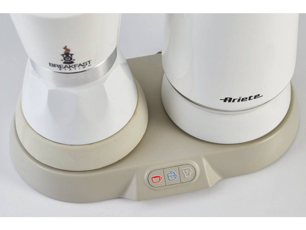 Čiernu kávu, čaj, cappuccino alebo horúcu čokoládu? Nemôžete sa ráno rozhodnúť, na čo máte väčšiu chuť. S talianskou raňajkovou stanicou od Ariete si môžete usporiadať hostinu napríklad každý deň. Chystáte rodinné raňajky, alebo si chcete spestriť home office? Raňajková stanica 3v1 je kombináciou rýchlovarnej kanvice, elektrickej moka kanvičky a napeňovača mlieka. Každý deň si tak môžete dopriať niečo iné, alebo dokonca všetko naraz. Mini kávovar dokonale uspokojí vašu chuť na domáce espresso a uvidíte, že tento malý spotrebič do kuchyne si okamžite zamilujete.