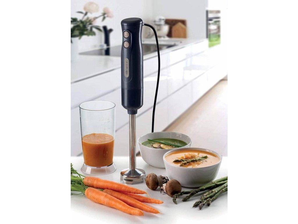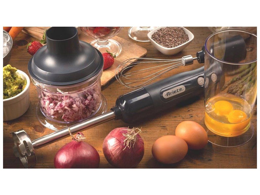 Výkonný ručný tyčový mixér Ariete Breakfast Hand Blender 601/10 3 v 1 s bohatým príslušenstvom je veľkým pomocníkom na každodenné varenie v kuchyni. Príkon 700 W zaistí rýchlu a efektívnu prípravu jedál. Ponorný mixér je vybavený jednou rýchlosťou a tlačidlom TURBO. Nerezová noha vám umožní bez námahy pripraviť smoothies, polievky, omáčky a mnoho ďalších pokrmov. Súčasťou je aj sekáčik na zeleninu alebo orechy a šľahacia metla na šľahačku, sneh a ďalšie nadýchané recepty.