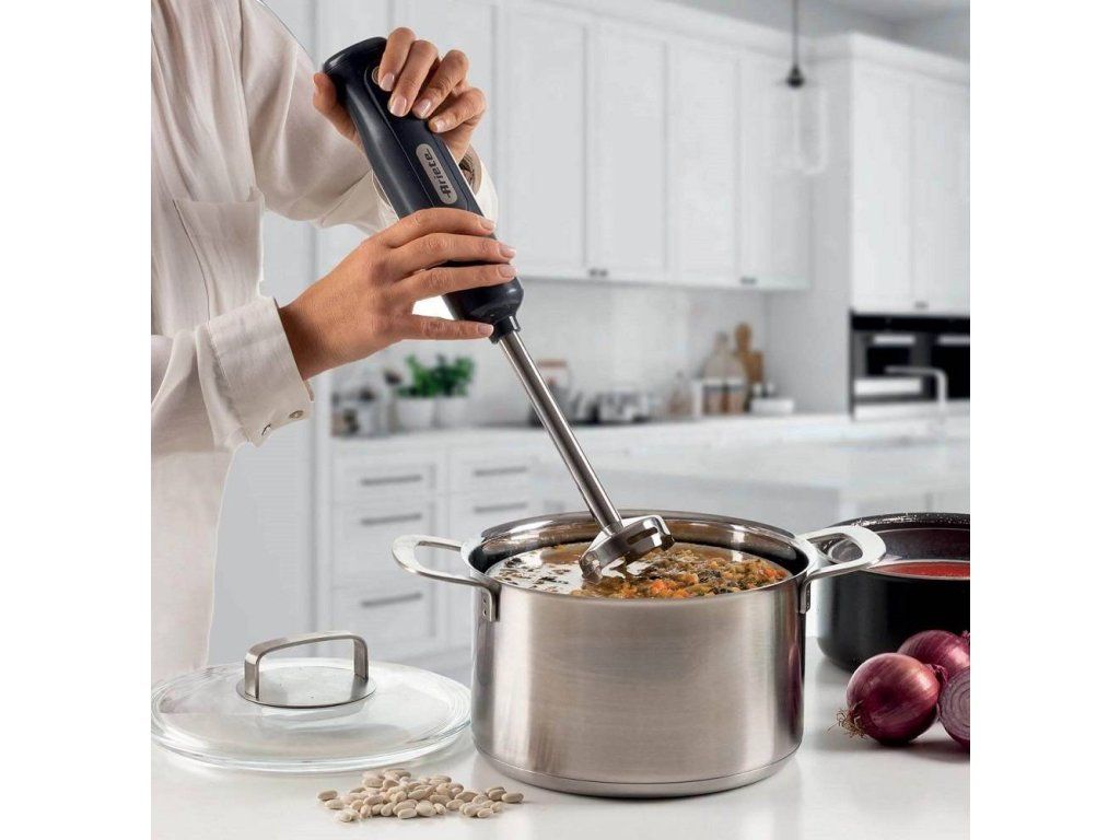 Tyčový ručný mixér s príkonom 700 W má dve rýchlosti – štandardné a turbo. Vyberte si tú, ktorá je vhodná na požadovanú konzistenciu. Odnímateľná noha s nožom z nerezovej ocele a ďalšie nástavce sú vhodné pre širokú škálu receptov.