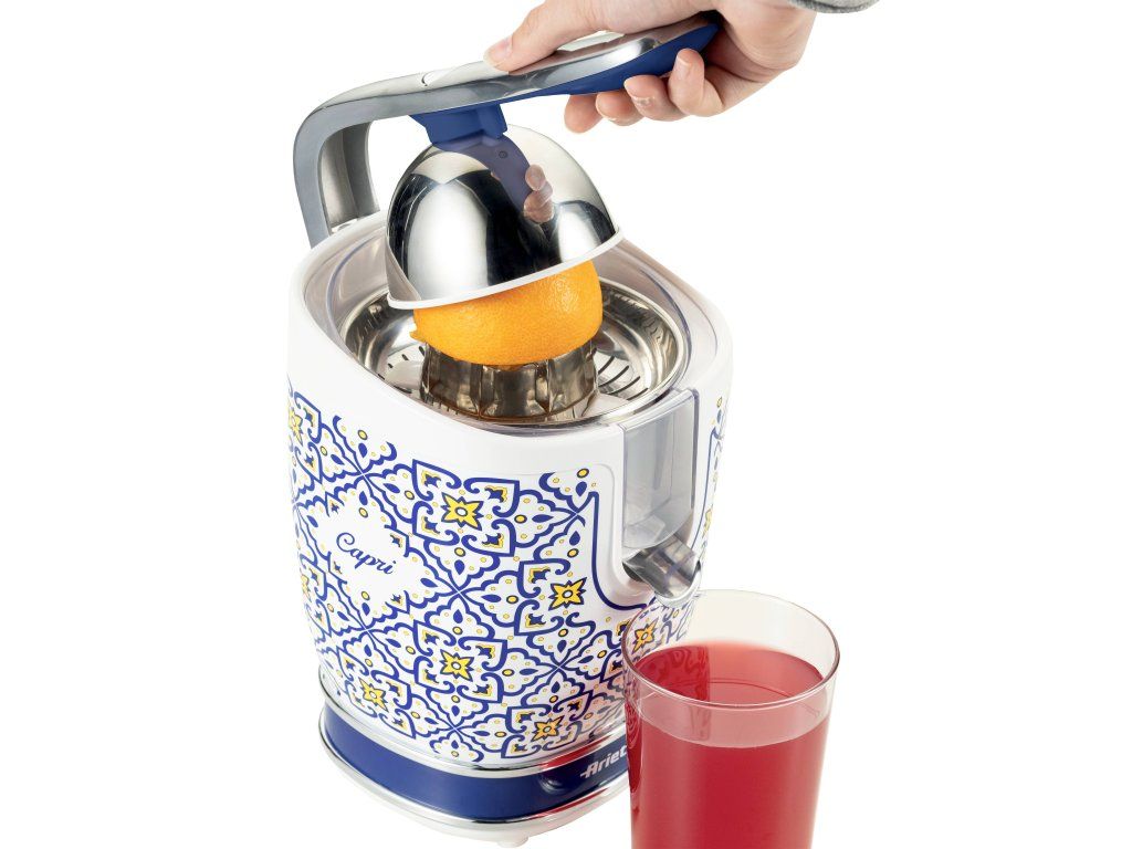 Jasné farby a jednoduché vzory inšpirované atmosférou talianskeho ostrova Capri. Elektrický pákový lis na citróny, pomaranče a ďalšie citrusy vám spríjemní každodennú prípravu domáceho džúsu. Stačí si vybrať vhodný nástavec podľa veľkosti plodu, vložiť rozkrojené ovocie, stlačiť páku a lis urobí automaticky všetku prácu za vás. Citrusovač Ariete Capri premení aj najobyčajnejšie raňajky na zážitok plný čerstvosti, chuti a vitamínov.