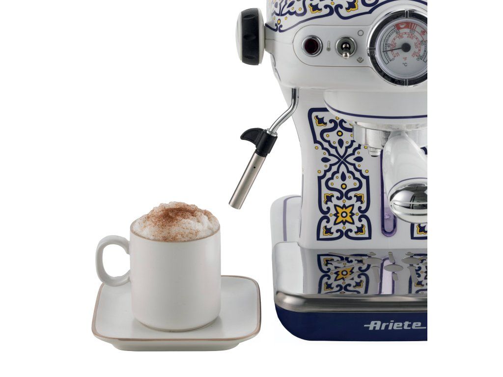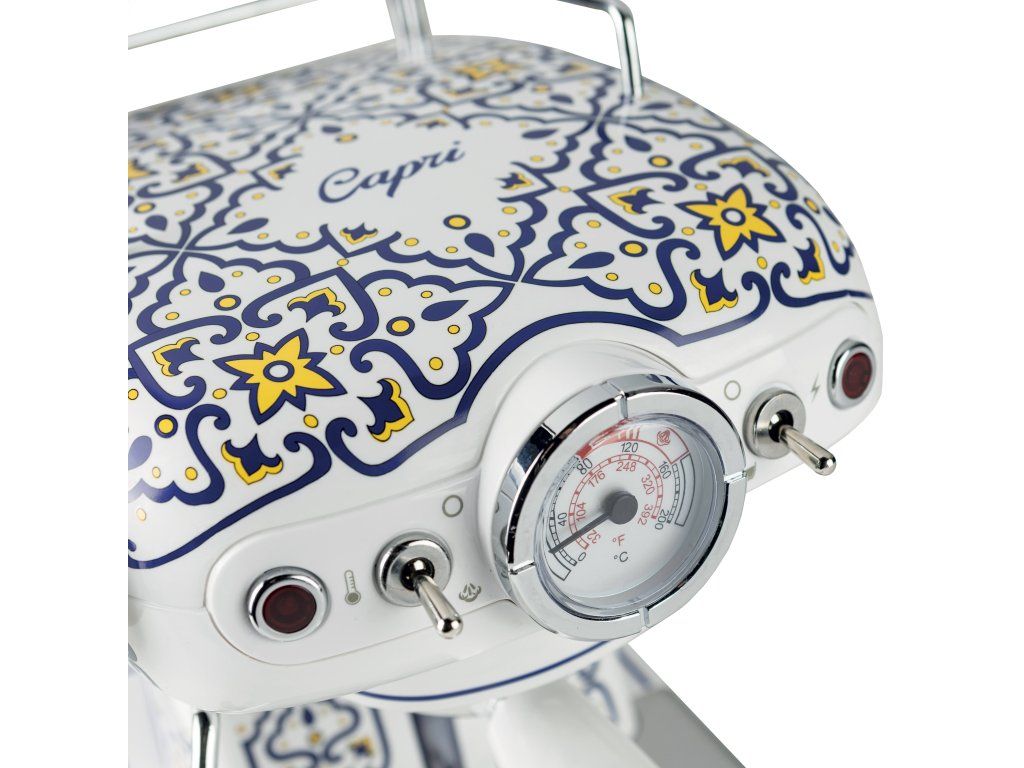 Jasné línie, živé farby a nádych stredomorského slnka. Pákový kávovar Ariete Capri prináša do vašej kuchyne atmosféru malebného talianskeho ostrova. Kombinuje elegantný štýl s jednoduchou a pohodlnou prípravou espressa, takže každá šálka vás poteší bohatou penou a jemnou krémovou textúrou. Nádržka na vodu s objemom 0,9 litra umožňuje prichystať niekoľko šálok po sebe, zatiaľ čo systém Maxi Cappuccino vytvorí nadýchané mlieko pre cappuccino alebo latte macchiato presne podľa vašej chuti. Kávovar je kompatibilný s mletou kávou aj ekologickými E.S.E. podmi, ktoré uľahčia obsluhu a šetria životné prostredie. Štýlový dizajn a hravé farebné vyhotovenie dodajú vašej kuchyni radostnú stredomorskú atmosféru a každé popoludnie sa premení na príjemný rituál s voňavou šálkou kávy.