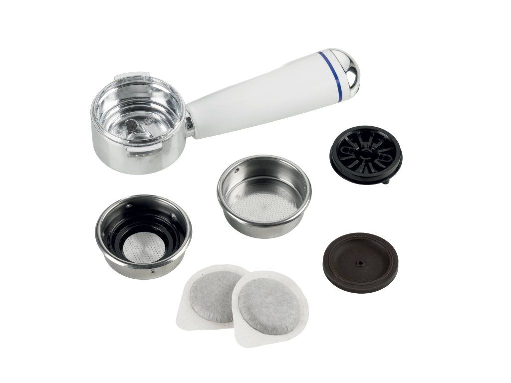 - Držiak filtra s možnosťou: 2 šálky mletá káva, 1 šálka mletá káva / 1 E.S.E. pod