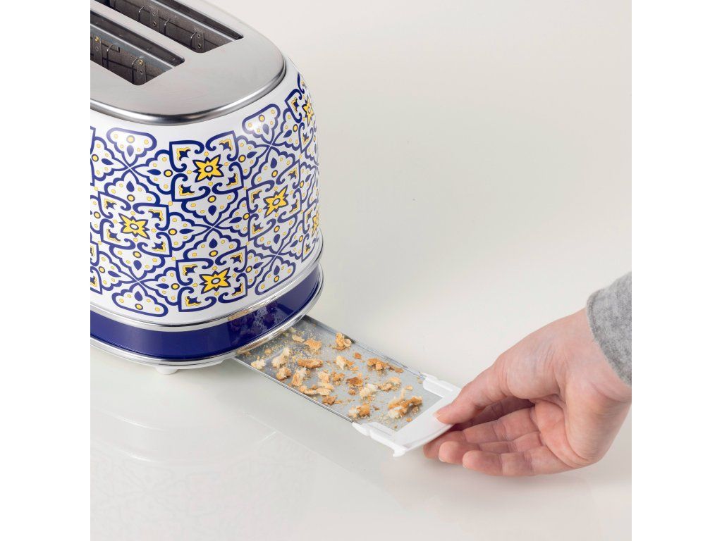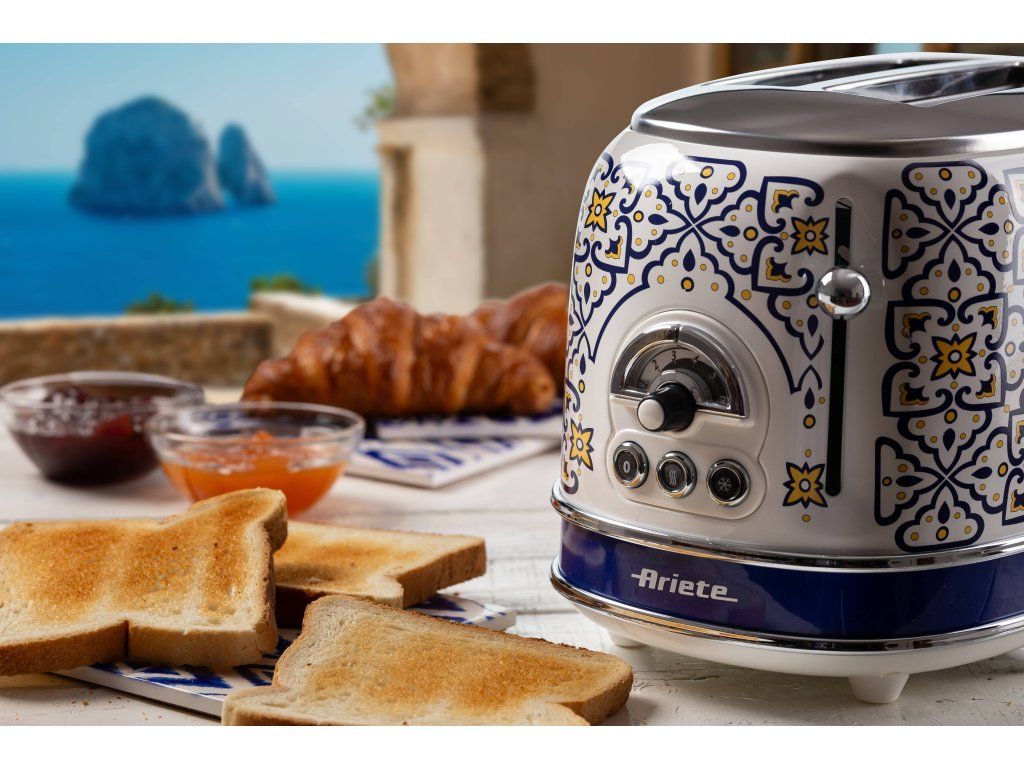 Vychutnajte si ráno v prímorskom štýle. Retro hriankovač na dve hrianky, so vzorom inšpirovaným stredomorským ostrovom Capri, vás každé ráno prenesie do slnečného Talianska. S týmto prístrojom ľahko a rýchlo pripravíte perfektne prepečené toasty pre celú rodinu, vďaka šiestim úrovniam opekania. Nechýba ani funkcia rozpekania mrazeného pečiva. Hriankovač má automatické vysunutie a vyberateľnú misku na omrvinky pre jednoduchú údržbu.