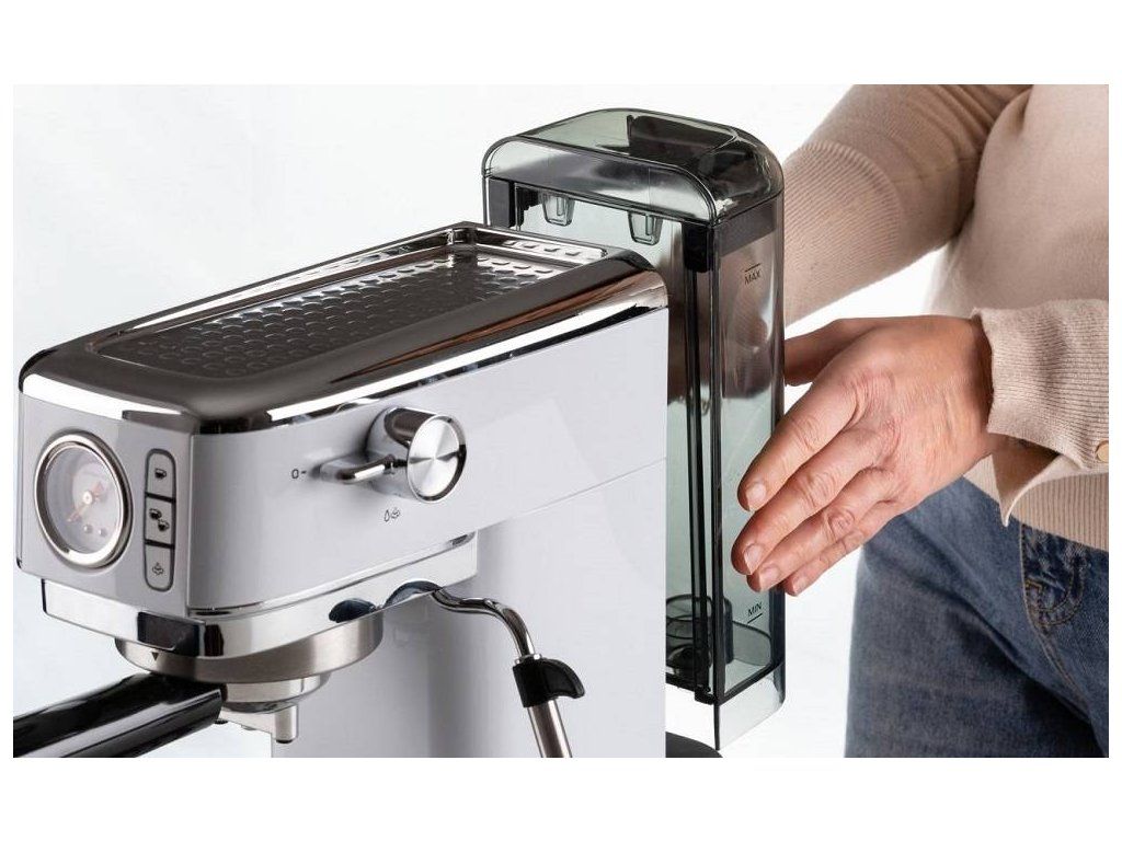 S domácim pákovým kávovarom s tlakom 15 barov si môžete pripraviť dokonalé espresso priamo z pohodlia domova. Vďaka funkcii horúcej vody si môžete užiť aj lahodné americano alebo si pripraviť šálku čaju. Jednoduchým otočením gombíka trysky môžete prepnúť na parnú funkciu a vytvoriť jemnú mliečnu penu do svojho obľúbeného cappuccina, flat white alebo latté.