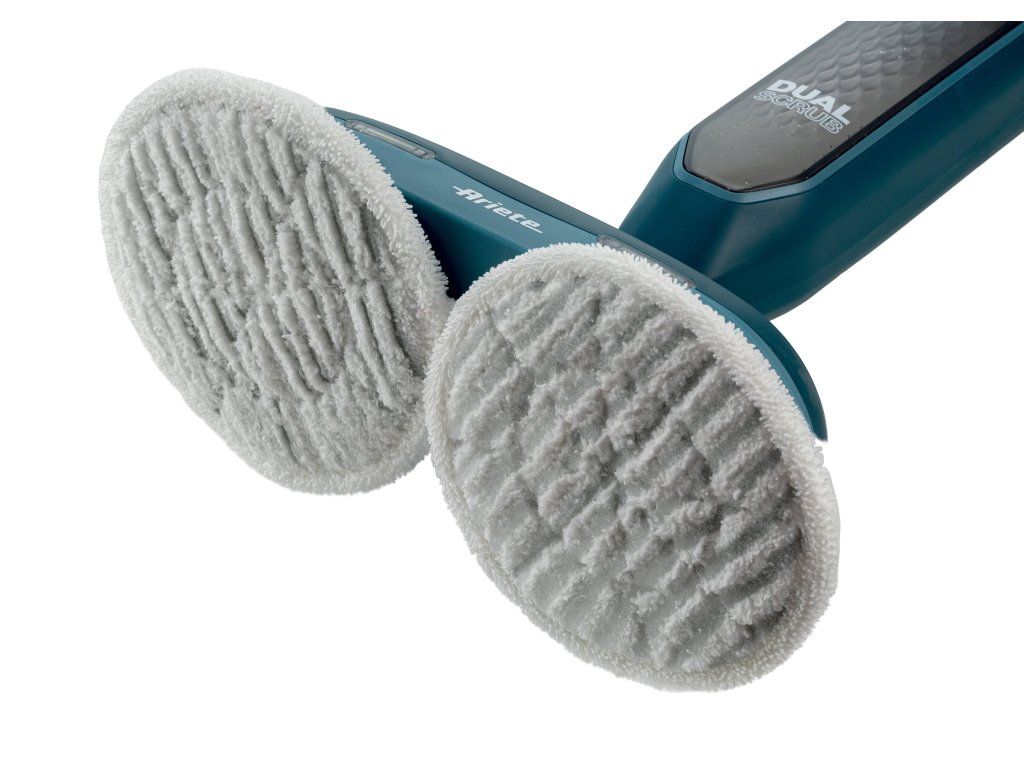 Doprajte svojmu domovu dokonalú čistotu s Dual Steam Scrub, parným mopom, ktorý posunie upratovanie podláh na novú úroveň a ušetrí vám polovicu námahy. Toto inovatívne riešenie, určené na všetky typy tvrdých podláh, spája silu horúcej pary s výkonom dvoch rotujúcich handričiek. Pri odstraňovaní odolných škvŕn je tak až dvakrát účinnejší ako bežné parné mopy. Vďaka vysokému výkonu a dvom rotujúcim handričkám Dual Steam Scrub súčasne naparuje a dôkladne odstraňuje odolnú špinu, prach aj mastnotu. Zároveň zbaví povrchy až 99,9% baktérií a choroboplodných zárodkov, a to všetko iba silou pary, bez použitia chemikálií. Je teda ideálnym parným mopom pre domácnosti s domácimi miláčikmi, alergikmi či ekzematikmi.
