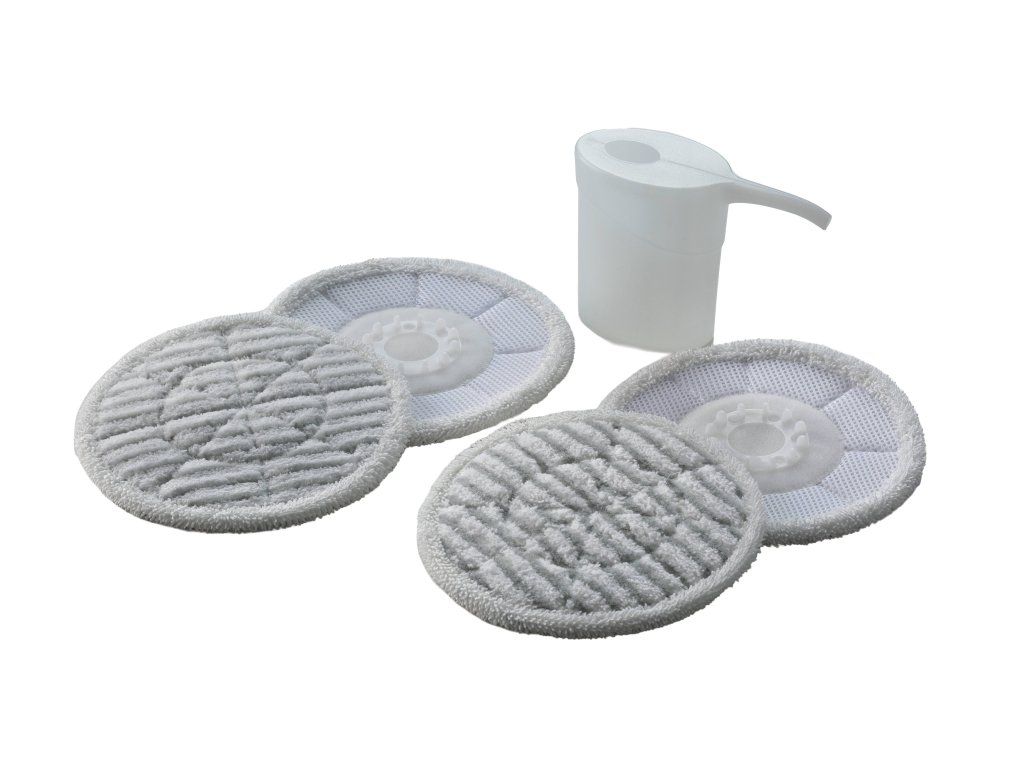 - Dve rotujúce handričky, ktoré súčasne naparujú a čistia do hĺbky