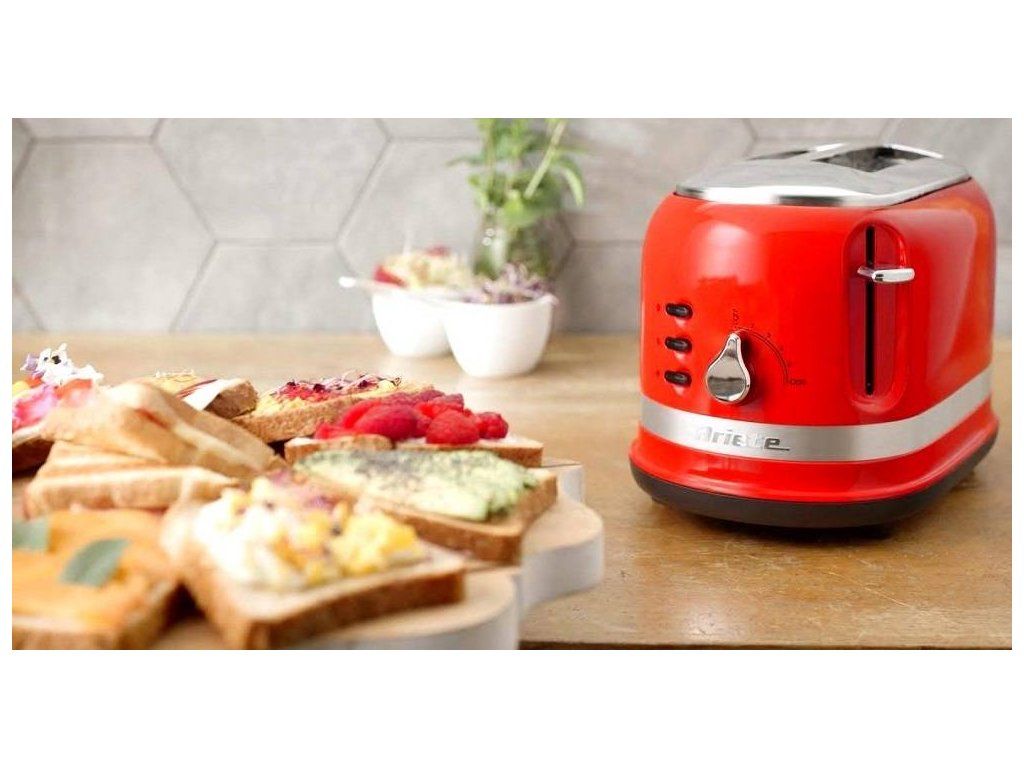 Hriankovač Ariete Moderna Toaster 149 vo výraznej červenej farbe budete milovať. Nielenže skvele vyzerá, ale pripraví vám chutné a chrumkavé toasty každý deň. Tento hriankovač na dva toasty je ideálny na opekanie chleba a ponúka automatické vyskakovanie. Vďaka vyberateľnej tácke na omrvinky je jeho údržba jednoduchá. Ponúka tri rôzne funkcie a šesť úrovní prepečenia, čo umožňuje prispôsobiť opečenie podľa individuálnych preferencií.