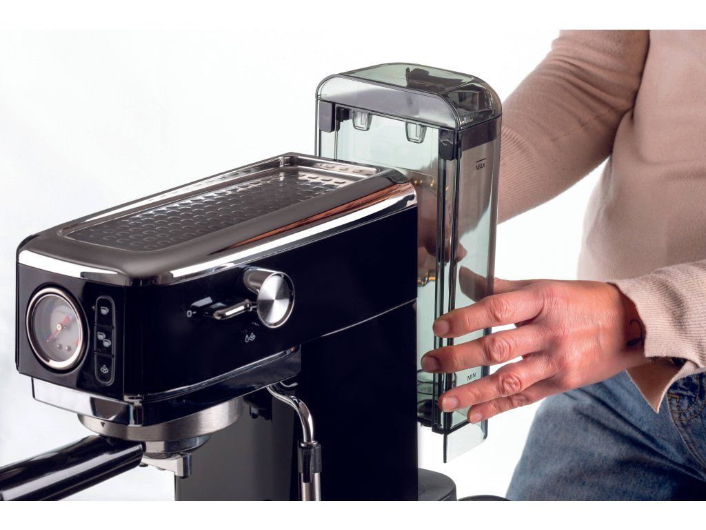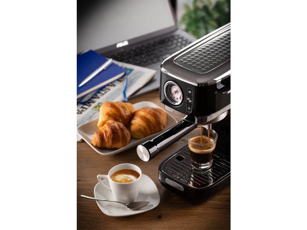 S domácim pákovým kávovarom s tlakom 15 barov si môžete pripraviť dokonalé espresso priamo z pohodlia domova. Vďaka funkcii horúcej vody si môžete užiť aj lahodné americano alebo si pripraviť šálku čaju. Jednoduchým otočením gombíka trysky môžete prepnúť na parnú funkciu a vytvoriť jemnú mliečnu penu do svojho obľúbeného cappuccina, flat white alebo latté.