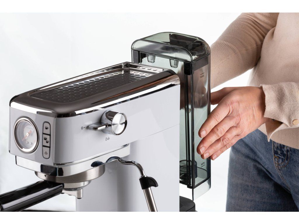 S domácim pákovým kávovarom s tlakom 15 barov si môžete pripraviť dokonalé espresso priamo z pohodlia domova. Vďaka funkcii horúcej vody si môžete užiť aj lahodné americano alebo si pripraviť šálku čaju. Jednoduchým otočením gombíka trysky môžete prepnúť na parnú funkciu a vytvoriť jemnú mliečnu penu do svojho obľúbeného cappuccina, flat white alebo latté.