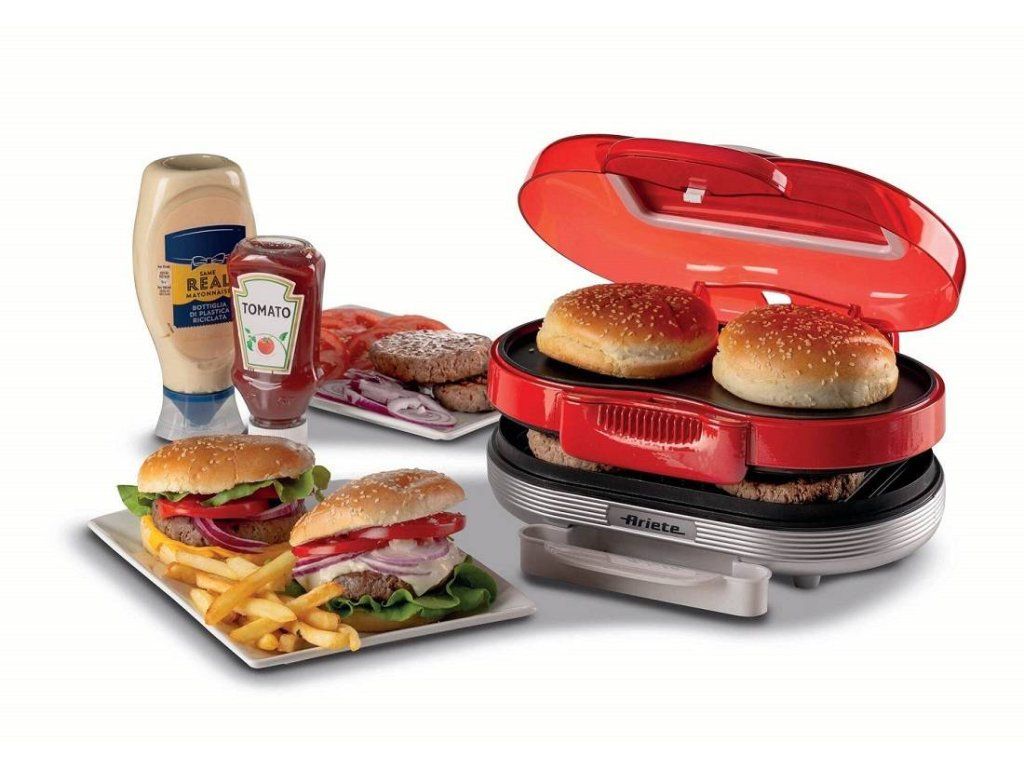 Pripravte legendárnu americkú párty v štýle 50. rokov! Šťavnatý hamburger si totiž môžete pripraviť aj doma. Šikovný elektrický gril na hamburgery Ariete Party Time má hneď dve špeciálne plochy na opekanie: jednu na mäso a druhú na prípravu chrumkavých žemlí. So strojom na opekanie hamburgerov navyše obslúžite hneď dvoch hostí naraz, plochy na opekanie totiž umožňujú prípravu dvoch kusov mäsa zároveň.