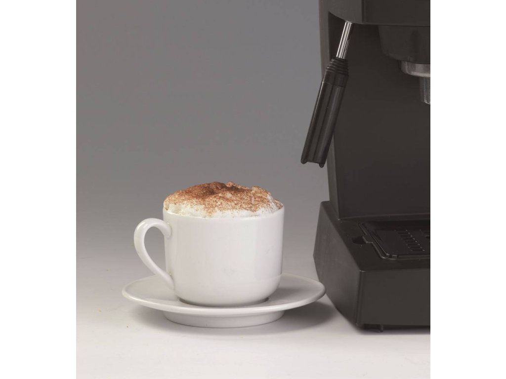 Domáci pákový kávovar na cappuccino, latté, alebo klasické espresso má odnímateľnú odkvapkávaciu mriežku a nádržku na vodu s kapacitou 0,9 l. Umožňuje použitie šálok s výškou 9 – 10 cm.