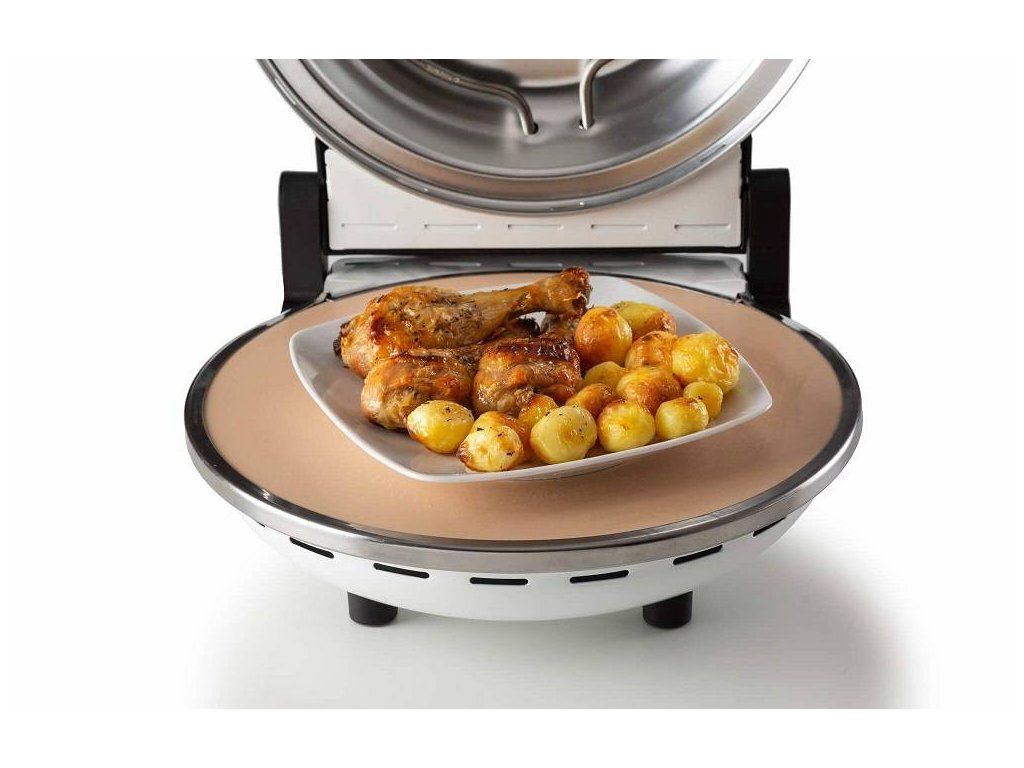 Pizza pec má ešte jednu veľkú výhodu. Vojde sa prakticky kdekoľvek, napríklad i do kuchynskej linky. Celý prístroj má priemer 34 cm a váži len 3,9 kg. Môžete si ho tak bez problémov vziať so sebou na dovolenku alebo na chatu.