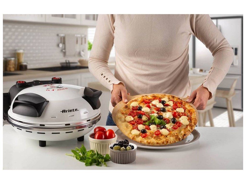 Na pravú taliansku pizzu už nemusíte ísť do reštaurácie. Pripravíte si ju vo svojej kuchyni alebo na chate. Čerstvá a chrumkavá – taká je totiž talianska špecialita z domácej elektrickej pece na pizzu Ariete. Vďaka kombinácii vysokej teploty až 400 °C a žiaruvzdornej kamennej dosky pripravíte neodolateľnú pizzu len za 4 minúty.