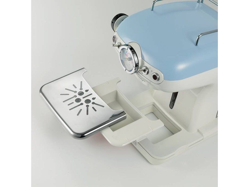 Domáci pákový kávovar má odnímateľnú odkvapkávaciu mriežku a nádržku na vodu s kapacitou 0,9 l. Umožňuje použitie šálok s výškou 9 – 10 cm.