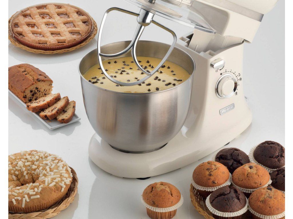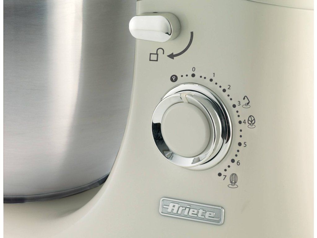Ručné miesenie patrí do minulosti. Kvalitný kuchynský robot Ariete Vintage spája modernú technológiu planetárneho miešania so sofistikovaným dizajnom. Výkonný motor, 7 rýchlostí a pulzné funkcie umožňujú spracovať tuhé cestá a vyšľahať zamatovo hladký bielkový sneh. Veľká misa z nerezovej ocele s objemom 5,5 l a 3 dodávané metly, hnetací hák na cesto, hnetací hák v tvare srdca na miešanie a drôtená metla na šľahanie, umožňujú širokú škálu kulinárskych kreácií. Protišmykové nožičky a vyváženie umožňujú bezpečnú a stabilnú prácu mixéra pri vysokých otáčkach. Vďaka veku s ochranou proti rozstreku vody sa nemusíte obávať vzniknutého neporiadku.