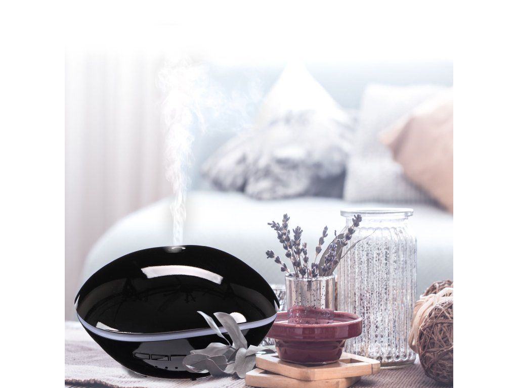 Aróma difúzer Stone čierny lesk 500mlIdeálny doplnok do vašich domovov, ktorý nádherne prevonia miestnosti a dokáže vám zlepšiť náladu. Aróma difúzery sú vhodné pre aromaterapiu, chromoterapiu, vzhľadom na svoj dizajn sú aj štýlovým interiérovým doplnkom. Tento prístroj premení vodu na jemnú vodnú paru. Ak pridáte do vody pár kvapiek esenciálneho oleja, elektrickú arómu difuzér ich pôsobením ultrazvuku rozloží na jemné mikročastice, ktoré prevoňajú váš byt. Aróma difúzer tiež neutralizuje nepríjemné zápachy, napr. od cigaretového dymu alebo domácich zvierat.