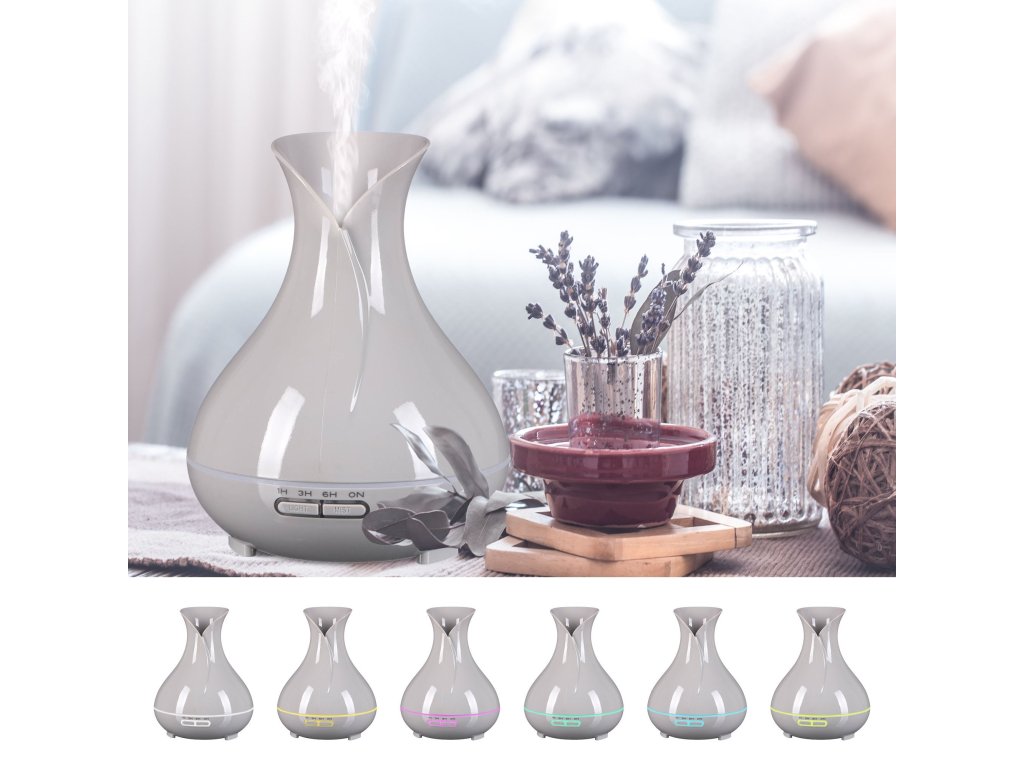 Ideální doplněk do Vašich domovů, který nádherně provoní místnosti a dokáže Vám zlepšit náladu. Aroma difuzery jsou vhodné pro aromaterapii, chromoterapii, vzhledem ke svému designu jsou i stylovým interiérovým doplňkem. Tento přístroj přemění vodu na jemnou vodní páru. Přidáte-li do vody pár kapek esenciálního oleje, elektrický aroma difuzér je působením ultrazvuku rozloží na jemné mikročástice, které provoní váš byt. Aroma difuzer také neutralizuje nepříjemné zápachy, např. od cigaretového kouře nebo domácích zvířat.Hlavní výhody: