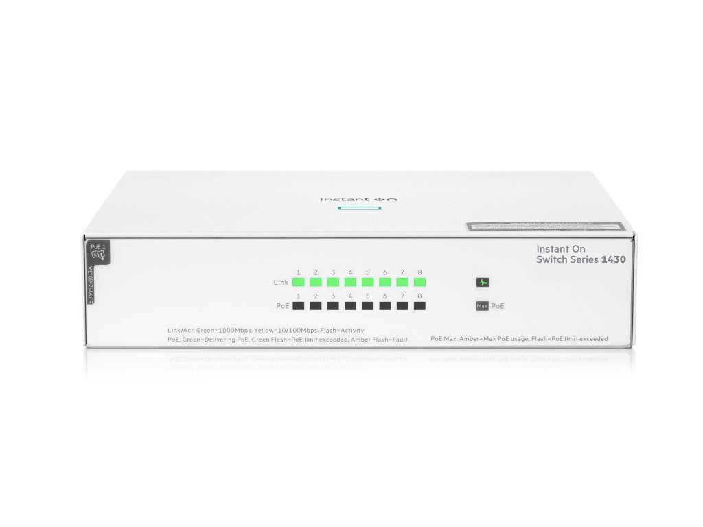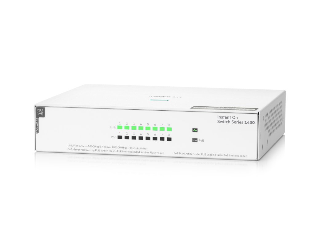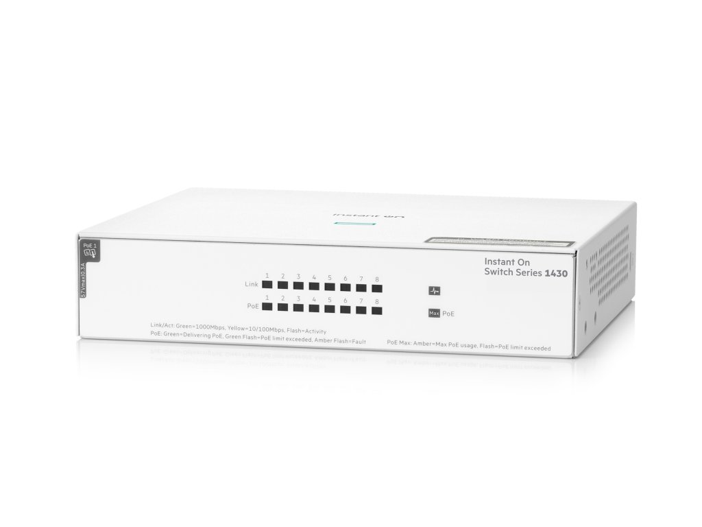 Model: Hewlett Packard Enterprise Aruba Instant On 1430 8G Class4 PoE 64W Switch: Ano Typ switche: Desktop Síťové standardy: *IEEE 802.3 *IEEE 802.3ab *IEEE 802.3az *IEEE 802.3i *IEEE 802.3u *IEEE 802.3x *IEEE 802.3z Datový přenos: *Ethernet 10/100/1000 Kapacita přepínání: 16 Gbit/s PoE: Ano Konektory: 8x RJ-45 Napájení: Externí adapter Rozměry: 177 x 37 x 150 mm (Š x V x H) Hmotnost: 0.77 kg Záruka: DoživotníDodatočné parametre