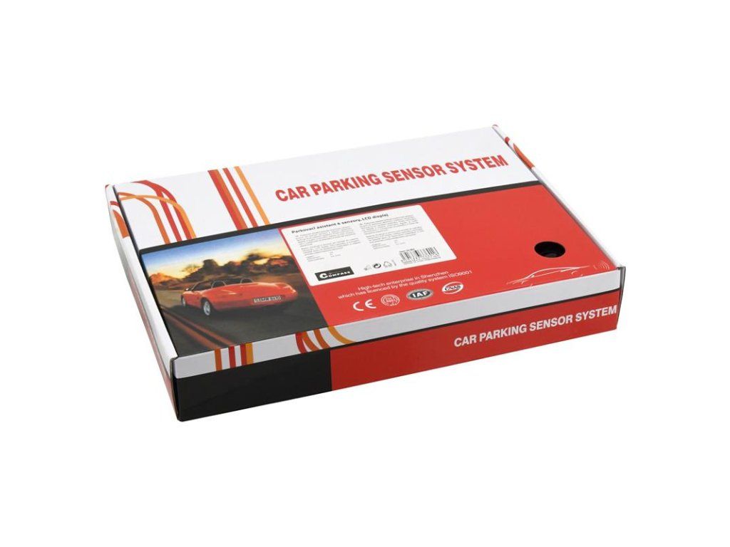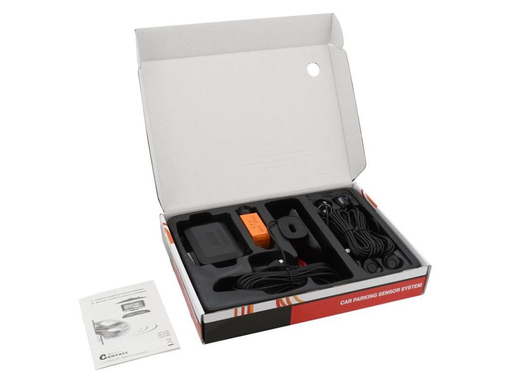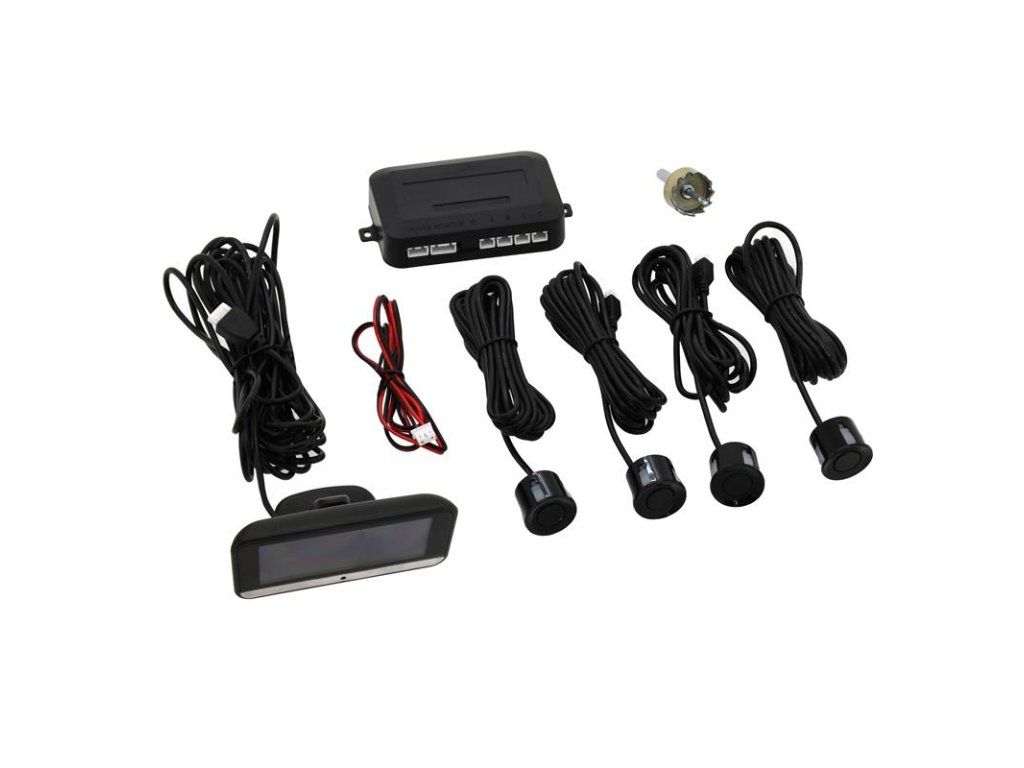 Balenie obsahuje displej, riadiacu jednotku, 4 snímače na montáž do zadného nárazníka, príslušnú kabeláž a vrták s vhodným priemerom.