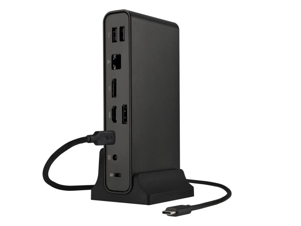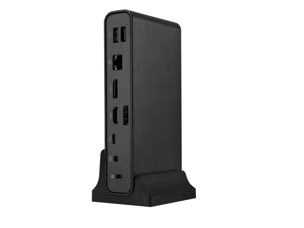ASUS Triple Display USB-C Dock Duo DC301 - Kouzlo kompaktní produktivity ASUS Triple Display USB-C Dock Duo DC301 je elegantní a kompaktní zařízení, které zefektivňuje připojení k notebooku. Napájejte notebook prostřednictvím jediného kabelu, připojte se k síti a periferním zařízením a pracujte na více úlohách s až čtyřmi monitory – včetně obrazovky notebooku a tří externích monitorů. Navíc disponuje integrovanou čtečkou SD karet pro nejrůznější firemní scénáře. Jednoduše řečeno, díky dokovací stanici ASUS Triple Display USB-C Dock Duo DC301 bude váš pracovní stůl čistý, uklizený a přehledný a zároveň se v mžiku připravíte na práci. Konektory: *RJ-45 (Gigabit): 1× *USB 3.2 Gen1 Type-A (5 Gb/s): 2× *USB 3.2 Gen2 Type-A (10 Gb/s, 5,0 V / 2,4 A): 1× *USB 3.2 Gen2 Type-C (10 Gb/s, 5,0 V / 3,0 A): 1× *USB 3.2 Gen2 Type-C (pouze DP 1.4): 1× *HDMI 2.0: 1× *DisplayPort 1.4: 2× *Kombinovaný 3,5mm audio konektor: 1× *Čtečka SD karet: 1× *Zámek Kensington: 1× *Zapínací tlačítko s LED indikátorem: 1× *DC konektor (4,5 mm): 1× Rozlišení videa: *HDMI (jediný externí výstup): 3840 × 2160 @ 60 Hz *DisplayPort (jediný externí výstup): 3840 × 2160 @ 60 Hz Podpora OS: *Windows 10 nebo novější *Mac OS 13 nebo novější Napájecí adaptér: *150 W (DC 20,0 V / 7,5 A) Bezpečnost: *Zámek Kensington Délka kabelu: *100 cm Barva: *Černá Hmotnost: *Dok: 514 g ± 5 g *Stojan: 95 g ± 5 g Rozměry: *160 × 80 × 32 mm Materiál: *Plast, kov Obsah balení: *ASUS Triple Display USB-C Dock Duo *1m kabel USB-C *Dokovací stojan *150W adaptér *Napájecí kabel *Uživatelská příručka *Záruční list Zapínací tlačítko: *Pro řadu ExpertBook B: ovládání pomocí jediného tlačítka – probuzení notebooku s více monitory z pohotovostního režimu *Pro ostatní notebooky se systémem Windows (ASUS i jiné): zapnutí/vypnutí LED a aktivace/deaktivace signálu na displeji DC300Dodatočné parametre