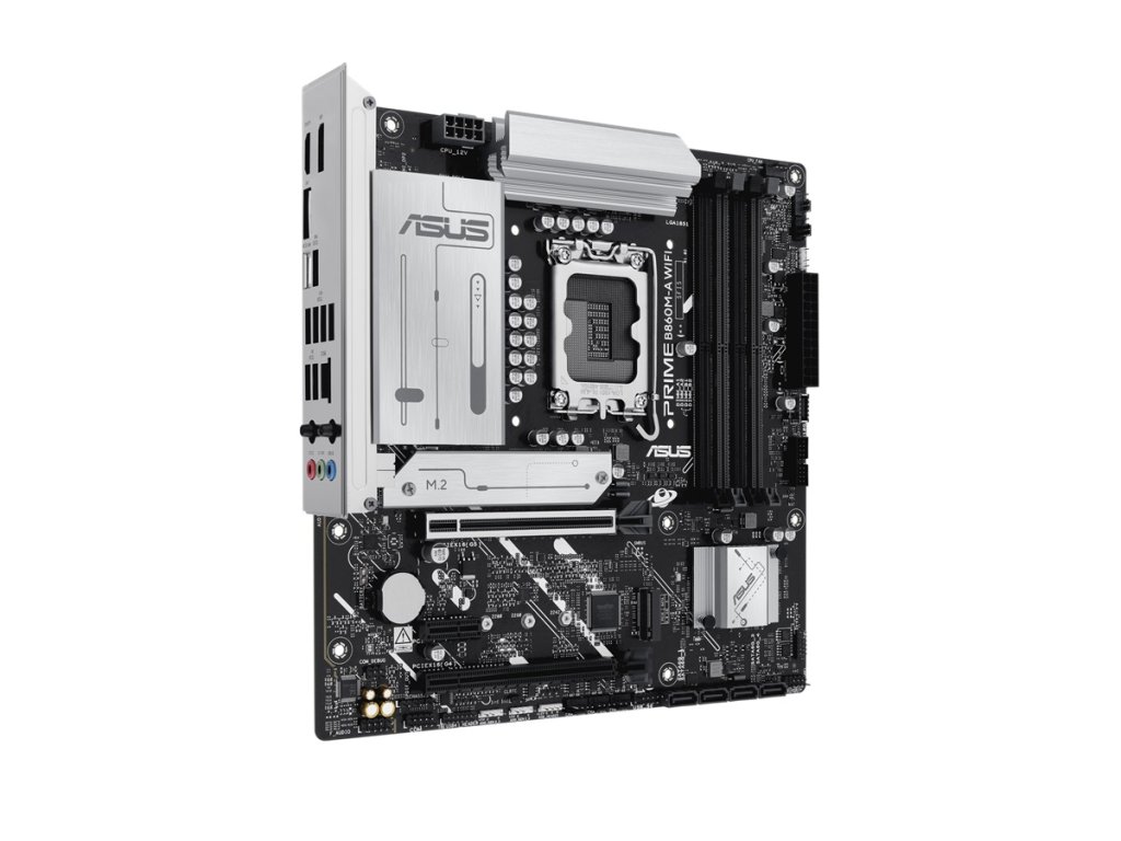 ASUS PRIME B860M-A WIFI * mATX Form Factor CPU: Support Intel® Core™ Ultra Processors (Series 2) , LGA1851 - Supports Intel® Turbo Boost Technology 2.0 and Intel® Turbo Boost Max Technology 3.0 Chipset: Intel® B860 Chipset Paměť: 4 x sloty DIMM, max. 192 GB, DDR5 - Podporuje až 8400+MT/s (OC), Non-ECC,Un-buffered ,Clocked Unbuffered DIMM (CUDIMM) *Dvoukanálová paměťová architektura *DIMM Fit *Podporuje paměťový modul Intel® Extreme Memory Profile (XMP) *ASUS Enhanced Memory Profile III(AEMPIII) Grafické porty: *2 x DisplayPort *1 x HDMI™ port Rozšiřující sloty: Intel® Core™ Ultra Processors(series 2) *1 x PCIe 5.0 x16 slot Intel® B860 Chipset *1 x PCIe 4.0 x16 slot (supports x4 mode) *1 x PCIe 4.0 x1 slot Úložný prostor: Total supports 2 x M.2 slots and 4 x SATA 6Gb/s ports Intel® Core™ Ultra Processors (Series 2) *M.2_1 slot (Key M), type 2242/2260/2280 (supports PCIe 5.0 x4 mode) Intel® B860 Chipset *M.2_2 slot (Key M), type 2242/2260/2280 (supports PCIe 4.0 x4 modes) *4 x SATA 6Gb/s ports Ethernet: *1 x Realtek 2.5Gb Ethernet *ASUS LANGuard Připojení a Bluetooth: *Wi-Fi 6E *2x2 Wi-Fi 6E (802.11ax) *Supports 2.4/5/6GHz frequency band *Bluetooth® v5.3** USB: Zadní USB (Total 7 ports) *1 x USB 20Gbps port (1 x USB Type-C®) *1 x USB 10Gbps port (1 x Type-A ) *2 x USB 5Gbps ports (2 x Type-A) *4 x USB 2.0 ports (4 x Type-A) Přední USB (Total 7 ports) *1 x USB 10Gbps connector (supports USB Type-C® ) *1 x USB 5Gbps header supports 2 additional USB 5Gbps ports *1 x USB 2.0 header supports 2 additional USB 2.0 ports Audio: Realtek 7.1 Surround Sound High Definition Audio CODEC *Supports: Jack-detection, Multi-streaming, Front Panel Jack-retasking *Supports up to 24-Bit/192 kHz playback Audio Features *Audio Shielding *Premium audio capacitors *Dedicated audio PCB layers Vstupy/výstupy zadního panelu: *1 x USB 20Gbps port (1 x USB Type-C®) *1 x USB 10Gbps port (1 x Type-A) *2 x USB 5Gbps ports (2 x Type-A) *4 x USB 2.0 ports (4 x Type-A ) *2 x DisplayPort *1 x HDMI™ port *1 x Wi-Fi module *1 x Realtek 2.5Gb Ethernet port *3 x Audio jacks Interní vstupy/výstupy: Ventilátory a chlazení: *1 x 4-pin CPU Fan header *1 x 4-pin CPU OPT Fan header *1 x 4-pin AIO Pump header *3 x 4-pin Chassis Fan headers Napájení: *1 x 24-pin Main Power connector *1 x 8-pin +12V CPU Power connector Úložiště: *2 x M.2 slots (Key M) *4 x SATA 6Gb/s ports USB: *1 x USB 10Gbps connector (supports USB Type-C® ) *1 x USB 5Gbps header supports 2 additional USB 5Gbps ports *1 x USB 2.0 header supports 2 additional USB 2.0 ports Různé: *3 x Addressable Gen 2 headers *1 x Aura RGB header *1 x Clear CMOS header *1 x Chassis Intrusion header *1 x COM Port header *1 x Front Panel Audio header (F_AUDIO) *1 x S/PDIF Out header *1 x SPI TPM header (14-1 pin) *1 x 10-1 pin Front System Panel header *1 x Thunderbolt™ (USB4®) header Příslušenství: Kabely: *2 x SATA 6Gb/s cables Různé: *1 x ASUS WiFi Q-Antenna *1 x M.2 rubber package *1 x Screw package for M.2 SSD Dokumenty: *1 x Quick start guideDodatočné parametre