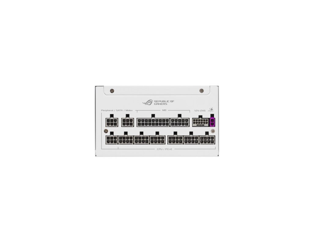 ASUS ROG - STRIX 1000W GAMING, bílý Intel Form Factor: ATX12V PFC Type: Aktivní PFC Výkon: 1000W ATX Standard: ATX 3.1 Rozměry: 160 x 150 x 86 mm Certifikace: 80Plus Platinum Ochrana: OPP/OVP/UVP/SCP/OCP/OTP AC Input range: 100-240Vac Výstupní napětí DC: +3.3V +5V +12V -12V +5Vsb Maximální zátěž: 25A 25A 83.3A 0.3A 3A Kombinovaná zátěž: 130W 130W 1000W 3.6W 15W Konektory: MB 24/20-pin x 1 CPU 4+4-pin x 2 PCI-E 16-pin x 1 PCI-E 6+2-pin x 4 SATA x 6 PERIPHERAL x 3Dodatočné parametre