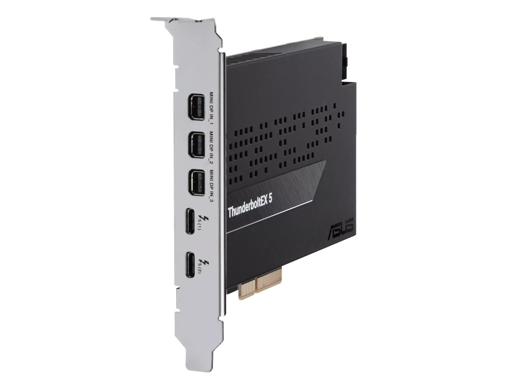 rozšiřující karta ASUS ThunderboltEX 5 přídavná karta Thunderbolt™ 5 s certifikací Intel® Karta ASUS ThunderboltEX 5 nabízí šířku pásma až 120 Gb/s Thunderbolt™ 5, podporu DisplayPort™ 2.1 s kompatibilním GPU, kompatibilitu s USB4® a navíc podporu až pěti zařízení Thunderbolt™. * bezproblémové sdílení mezi dvěma počítači pomocí Thunderbolt™ Share * rozhraní PCIe 4.0 x 4 * 6pinový napájecí konektor PCIe pro funkci Flexible FastCharge * podpora až 3x 8K@60Hz s DSC podle specifikace DisplayPort 2.1 Čipset: Intel® JHL9580 Thunderbolt 5 Externí porty: * 2x USB typ C® – až 120 Gb/s pro zařízení Thunderbolt™ a USB4® – podpora 1x USB typ C® a 1x USB typ C® až celkem 130 W s Flexibilní funkce FastCharge – výstupní napájení USB typ C®: max. 20V/4,8A * 3x mini DisplayPort IN * 1x 6kolíkový napájecí konektor PCIe pro flexibilní funkci FastCharge * 1x USB 2.0 header * 1x Thunderbolt™ header Rozhraní: PCIe 4.0 x4 Rozměry: 119,5x88,9mm Příslušenství: * 1x kabel Thunderbolt * 1x kabel USB 2.0 * 3x kabel miniDP na DP * 1x uživatelská příručka Odkaz na stránku výrobce: https://www.asus.com/motherboards-components/motherboards/accessories/thunderboltex-5/Dodatočné parametre