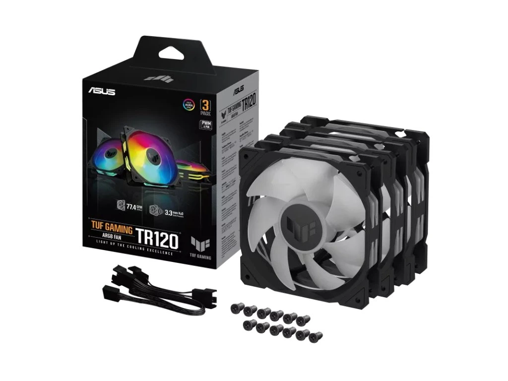 TUF Gaming TR120 ARGB Fan - Triple Pack Velikost ventilátoru: 120 x 120 x 28 mm Ložisko ventilátoru: Hydraulické Rychlost ventilátoru: 2000 RPM(+/- 10%) Airflow: 77.4 CFM Hluk ventilátoru: 29 dB(A) AURA SYNCDodatočné parametre