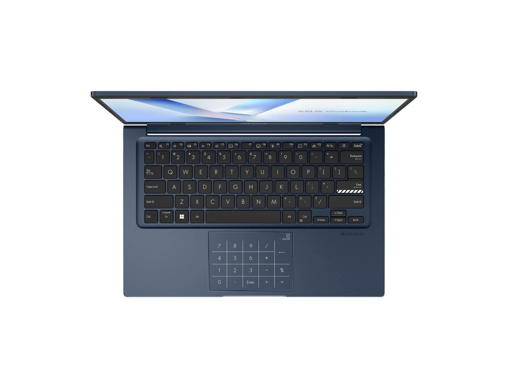 ASUS Vivobook 14 (X1404VA-EB1758W) * armádní standard MIL-STD 810H * klávesnice ASUS ErgoSense * ASUS Antimicrobial Guard Plus * ASUS AI noise cancelation * kloub s rozsahem 180° Operační systém: Windows 11 Home Procesor: Intel Core 3 100U (6 jader - 2P + 4E, 8 vláken, P-core 1,2/4,7 GHz, E-core 0,9/3,3 GHz, 10 MB cache) Paměť: 8 GB DDR5 na desce Počet slotů (celkem/volných): 1x slot DDR5 SO-DIMM (1/1) Pevný disk: 512GB M.2 NVMe™ PCIe® 4.0 SSD Optická mechanika: ne Čtečka paměťových karet: ne Čtečka čipových karet: ne Displej: 14'' FHD (1920x1080) 16:9 antireflexní IPS, 60Hz, 250 nitů, 45% NTSC, LED podsvícení Grafická karta: Integrovaná Intel Iris/Intel UHD Graphics Audio: SonicMaster, integrovaný reproduktor, integrovaný mikrofon Web kamera: 720p HD Polohovací zařízení: Precision touchpad + NumberPad Podsvícená klávesnice: ano Numerická klávesnice: ne Čtečka otisků prstů: ne Síť: ne Bezdrátová komunikace: WLAN + Bluetooth (Wi-Fi 6 802.11ax 1*1 + Bluetooth® 5.2) Porty USB: * 1x USB 2.0 typu A (rychlost přenosu dat až 480 Mb/s) * 1x USB 3.2 Gen 1 typu C (rychlost přenosu dat až 5 Gb/s) * 1x USB 3.2 Gen 1 typu C s podporou napájení (rychlost přenosu dat až 5 Gb/s) * 2x USB 3.2 Gen 1 typu A (rychlost přenosu dat až 5 Gb/s) Další porty: * 1x HDMI 1.4 * 1x 3,5mm kombinovaný audio jack pro sluchátka/mikrofon Baterie: 42Wh, 3S1P, 3článková Li-ion Napájení: 48W USB-C AC adaptér Správa zabezpečení: ochrana heslem uživatele při spouštění systému BIOS, Trusted Platform Module (firmware TPM) Barva: Quiet Blue Materiál: plast Rozměry: 324,9x213,9x17,9mm Hmotnost: cca 1,4kg Záruka: 2 roky Dvouletá prémiová záruka ASUS Pick-up and Return pro IČO i soukromé osoby ZDARMA. Podrobnosti naleznete zde: https://www.asus.com/cz/event/bezstarostny_servis Stránky výrobce: https://www.asus.com/laptops/for-home/vivobook/asus-vivobook-14-x1404/ Nabídku kompatibilních rozšíření ke standardní záruce naleznete v souvisejícím zboží.Dodatočné parametre