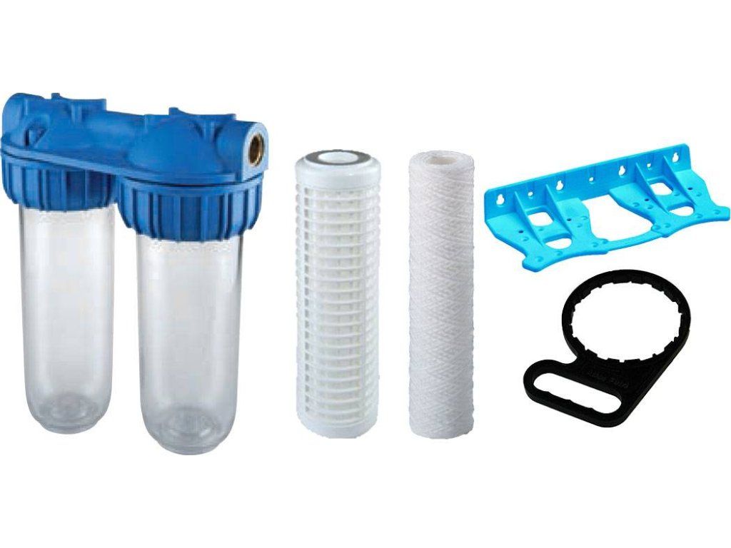 Komplet SENIOR DUPLEX 1" s vložkou RL-10 a FA-10 (10mcr) + držiak + kľúč.Filter je určený na dvojstupňovú mechanickú filtráciu vody, pričom prvá vložka