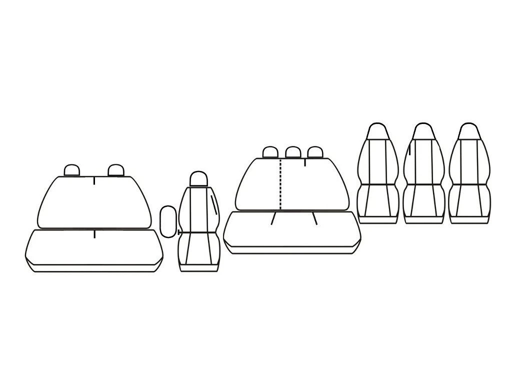 - První řada : Potah řidíče s loketní opěrkou, bederní opěrka a dvojpotah spolujezdců s NEDĚLENÝM dvojsedákem, 3 opěrky hlavy.