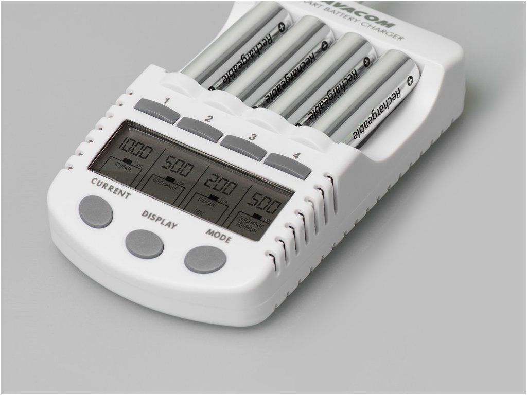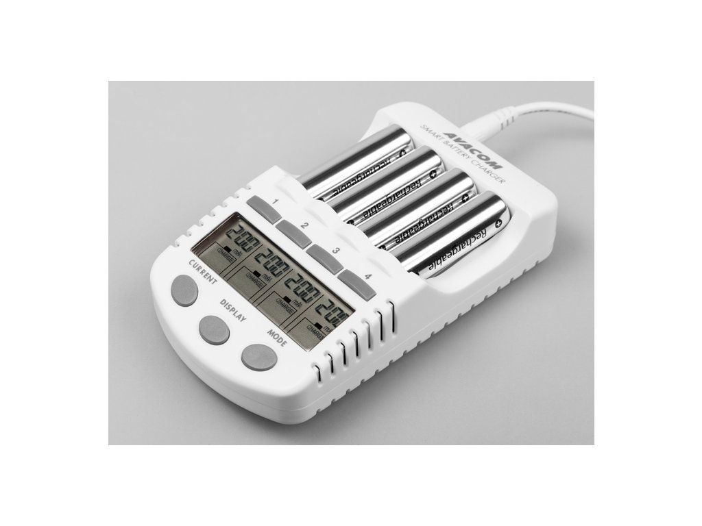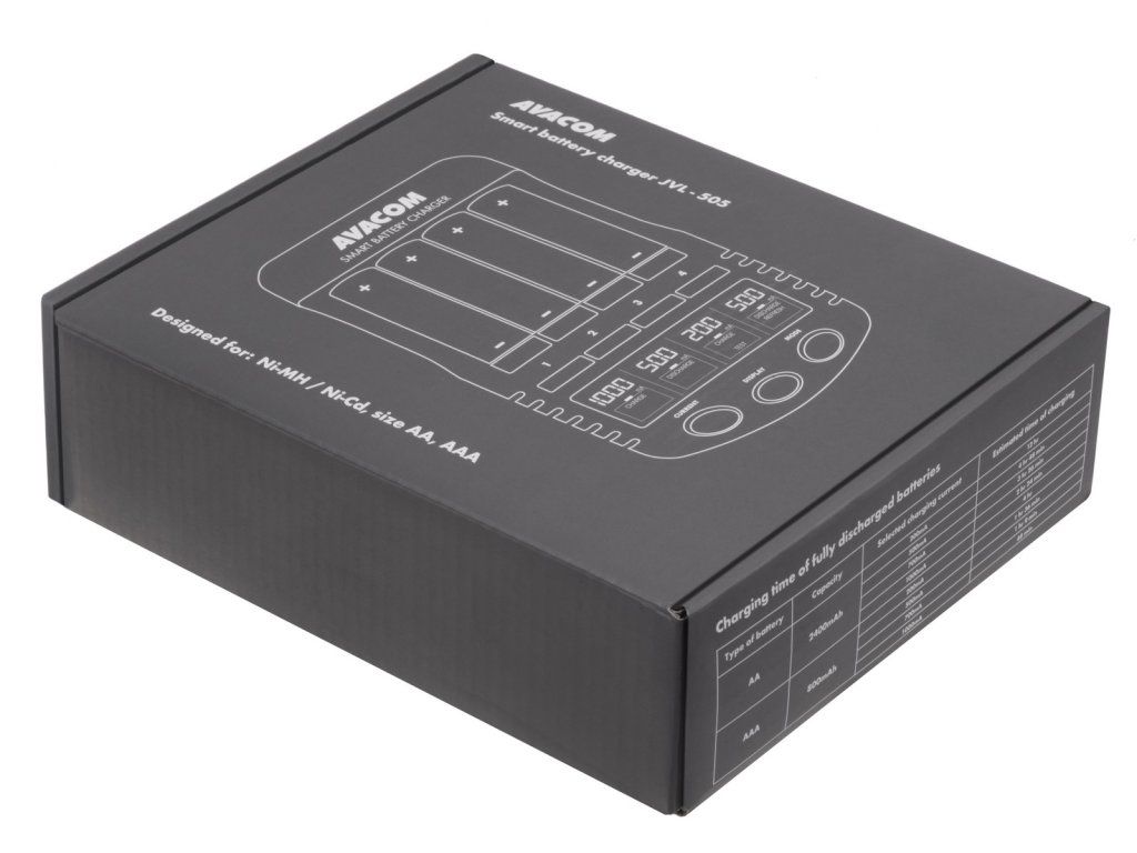Inteligentní čtyřkanálová nabíječka tužkových AA a mikrotužkových AAA baterií. Nabíjí Ni-MH a Ni-Cd baterie. Nabíjecí proud 200, 500, 700, a 1000mA.Nabíječka baterií AVACOM JVL-505