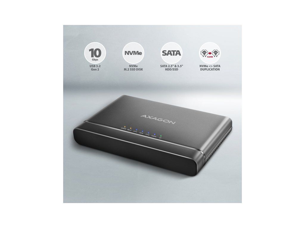 AXAGON ADSA-CC USB-C 10 Gbps - NVMe M.2 SSD & SATA 2.5''/3.5'' SSD/HDD CLONE MASTER 2