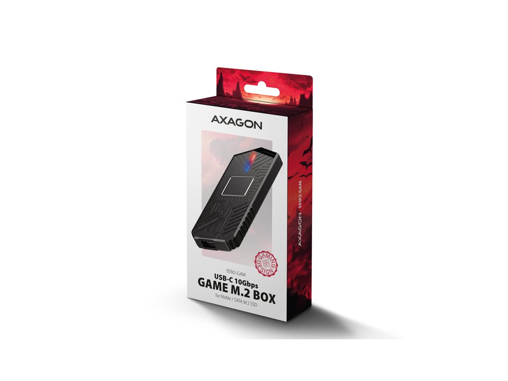 AXAGON EEM2-GAM, USB-C 10Gbps - NVMe & SATA SSD GAME M.2 box, bezskrutkový