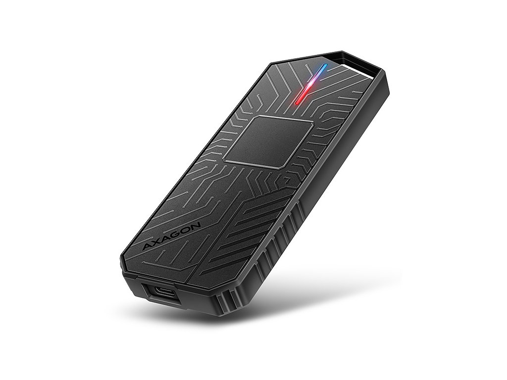 Gamingový externí AXAGON EEM2-GAM GAME M.2 box s USB 10Gbps rozhraním určený pro M.2 NVMe nebo SATA SSD disky. Spolehlivé připojení umožňuje oboustranný USB-C konektor na boxu. V balení naleznete dva kabely pro připojení boxu k počítači. Jeden USB-C <-> USB-C a druhý USB-C <-> USB-A. Můžete tak box připojit k jakémukoliv volnému USB portu na notebooku. Díky USB 3.2 Gen 2 rozhraní je přenosová rychlost až 10 Gb/s. Externí M.2 box podporuje i další moderní funkce např. UASP, TRIM a umožňuje čtení S.M.A.R.T. informací monitorujících stav disku. Unikátní vlastností, díky použitému čipsetu, je možnost použití jak M.2 NVMe tak i SATA disků. Nemusíte tak přemýšlet jaký typ M.2 disku do boxu vložíte. Výhodou je uchycení rovnou pro čtyři různé délky SSD karet – 30, 42, 60 a 80 mm. M.2 karty mohou být jednostranné nebo oboustranné. Box nemá omezení kapacity vloženého SSD disku. Velkou výhodou je bezšroubkové otevírání boxu. Stačí jen stisknout tlačítko umístěné na boku, čímž se odjistí spodní kryt. Výměna disků je tak snadná a rychlá. Stylový rámeček pro M.2 disky vás zaujme prémiovým herním designem v černé barvě s elegantním povrchem, který dokonale podtrhne váš gaming setup. RGB LED indikace dodává stylový vzhled a dokonale ladí s jakýmkoliv herním notebookem, čímž ještě více umocňuje atmosféru vašeho herního prostředí. Součástí balení je také funkční návlek, který chrání tlačítko pro otevírání boxu, zvyšuje celkovou ochranu, a navíc nabízí poutko pro zavěšení. Hliníkové tělo boxu a teplovodivá podložka zajišťují ideální chlazení vloženého M.2 SSD disku. Tím se prodlužuje jeho životnost a zároveň se předchází zpomalování rychlosti disku, tzv. Thermal Throttling. Vložením M.2 SSD disku do tohoto boxu snadno vytvoříte rychlý, kompaktní a univerzální externí disk, který je možné použít nejen s počítači a notebooky, ale také s mobilními telefony a tablety. Vstup: • USB 10Gbps (USB 3.2 Gen 2), konektor USB-C female. • Kompatibilní s USB 480Mbps, USB 5Gbps, USB4 a Thunderbolt 3/4. Podpora zařízení: • NVMe M.2 SSD disky, • SATA M.2 SSD disky, • určeno pro karty formátu M key nebo B+M key, • NGFF 75-pinový M key slot pro M.2 disky. Další vlastnosti: • Podpora přenosových rychlostí 10.000 / 5.000 / 480 Mbit/s. • Podpora M key nebo B+M key NVMe (PCI-Express) i SATA (AHCI) M.2 SSD disků bez omezení maximální kapacity. • Podpora M.2 disků rozměrů - 2230, 2242, 2260, 2280 mm. • Podpora jednostranných i oboustranných M.2 SSD disků. • Vyhovuje PCI Express Base Specification Revision 3.1a specifikaci. • Vyhovuje NVM Express 1.3 specifikaci. • Vyhovuje Serial ATA 3.2 specifikaci (SATA/600), přenosové rychlosti až 6 Gb/s (600 MB/s). • Vyhovuje USB Mass Storage Class specifikaci. • Celková propustnost / přenosová rychlost adaptéru je dána použitým USB rozhraním (teoreticky až 10 Gbit/s). • Reálná propustnost / přenosová rychlost adaptéru kolem 1000 MB/s (1 GB/s) je dána limity USB 3.2 Gen 2 rozhraní. • Podpora BOT (Bulk-Only Transport). • Podpora UASP (USB Attached SCSI) pro rychlejší přenos dat ve Windows 8 a novějších. • Podpora funkce TRIM pro omezení pozvolné degradace výkonu SSD v čase. • Podpora S.M.A.R.T. (Self-Monitoring, Analysis, and Reporting Technology) systém monitorující stav disku. • Podpora bootování z SSD v externím boxu. • Možnost připojení zařízení za chodu díky podpoře Hot Plug. • Plná podpora Plug and Play. • Napájení po USB sběrnici až 900mA z jednoho USB portu zcela dostačuje ve všech případech. • RGB LED indikace. • Hliníkové odolné tělo a teplovodivá podložka napomáhají lepšímu chlazení M.2 SSD disku. • Vyšší povrchová teplota boxu není závadou - díky hliníkovému tělu je teplo generované provozem disku lépe odváděno a předáváno do okolí. • Dva kabely USB type C nebo A male / USB type C male, délky 50 cm jsou součástí balení. Další údaje: • Rozměry boxu 13 x 130 x 55 mm (V x Š x H). • Hmotnost boxu 105 g (bez kabelu a M.2 disku). Podporované operační systémy: • Windows 7 / 8.1 / 10 / 11 a novější, macOS, iPadOS, iOS, Linux, Chrome OS a Android. • Kompatibilita je závislá na aktualizovaném operačním systému a podpoře od výrobce zařízení. • Pozn.: Při použití s Windows 7 je nutné ověřit u výrobce M.2 SSD disku podporu tohoto OS a dostupnost ovladače. Balení v kartonové krabičce s otvorem pro zavěšení obsahuje: • USB-C 10Gbps externí box pro M.2 SSD, • ochranný návlek, • USB-C - USB-C kabel délky 50 cm, • USB-A - USB-C kabel délky 50 cm, • 2ks teplovodivých podložek, • vícejazyčný návod CZ/DE/DK/ENG/ESP/FIN/FR/GR/HR/HU/IT/NL/PL/PT/RO/SK/SWE/TR/UA/BG/CN/ARA.Dodatočné parametre