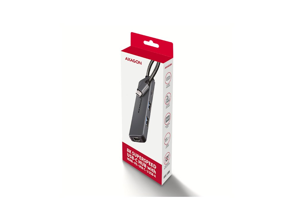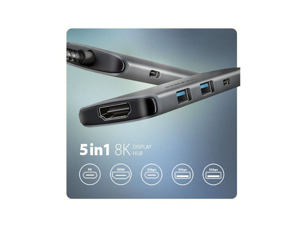 AXAGON HMC-5H8K, USB 5Gbps hub, 2x USB-A, USB-C, HDMI 8k/30Hz, PD 100W, kábel USB-C 15cm