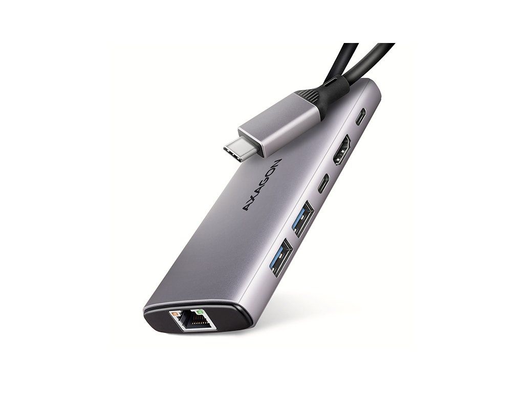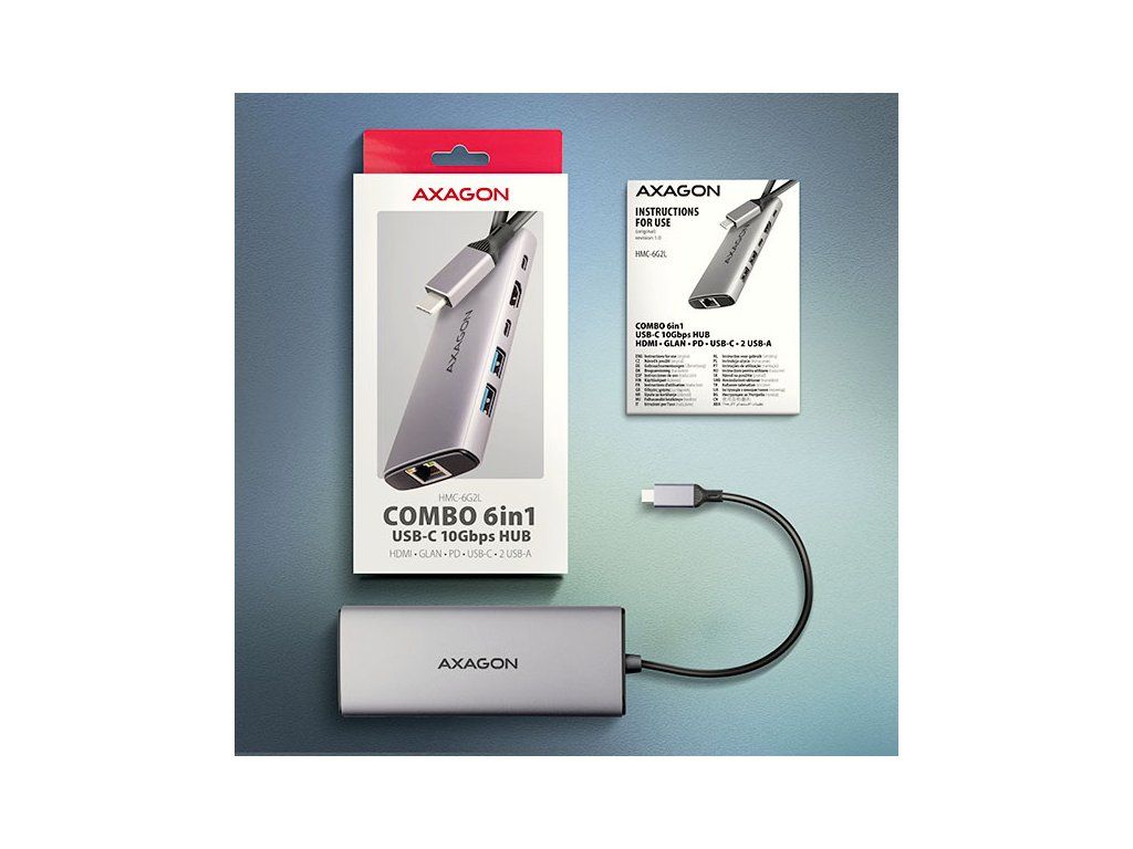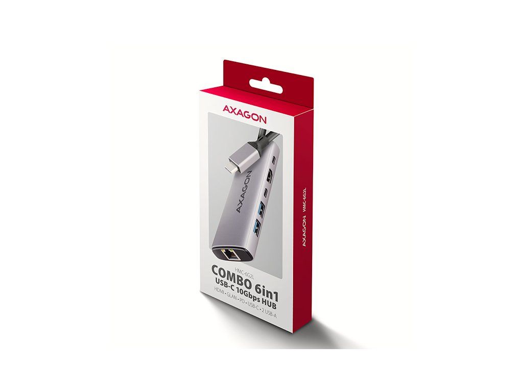 AXAGON HMC-6G2L, USB 10Gb/s hub, 2x USB-A, 1x USB-C, HDMI 4k/60, RJ-45, PD 100W, kábel USB-C 15cm