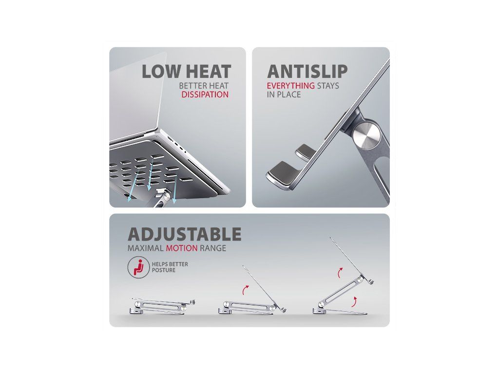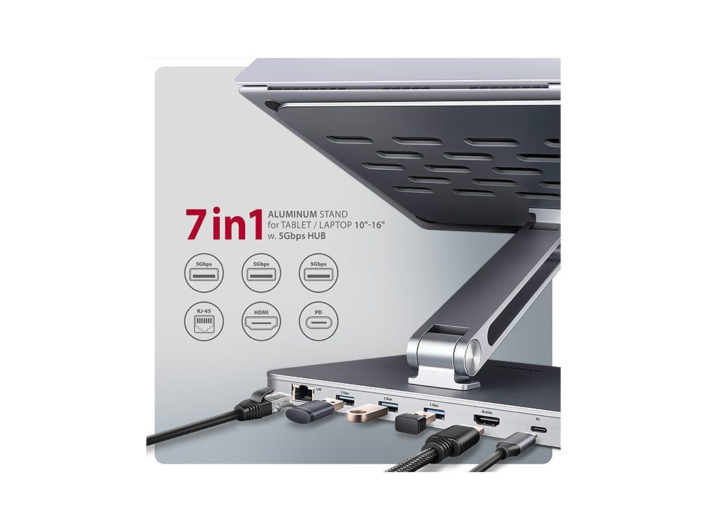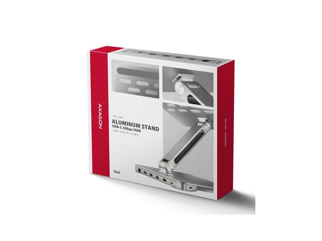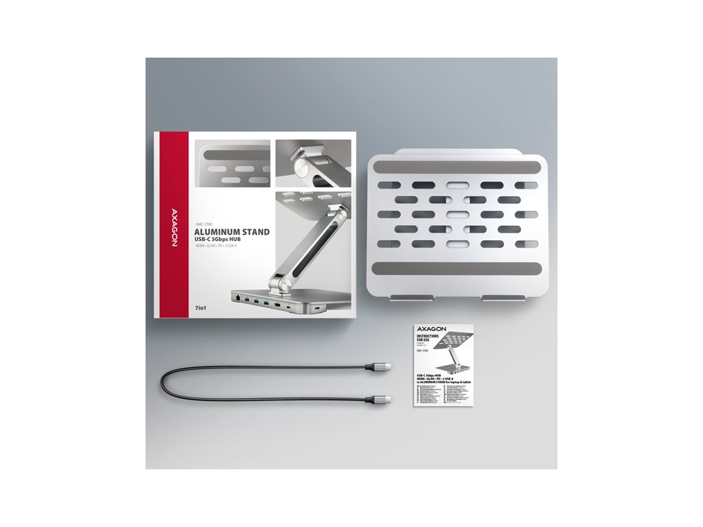 AXAGON HMC-STND, stojan pre 10''-17'' notebooky, USB 5Gbps hub, 3x USB-A, HDMI 4k/60Hz, RJ-45, PD 100W