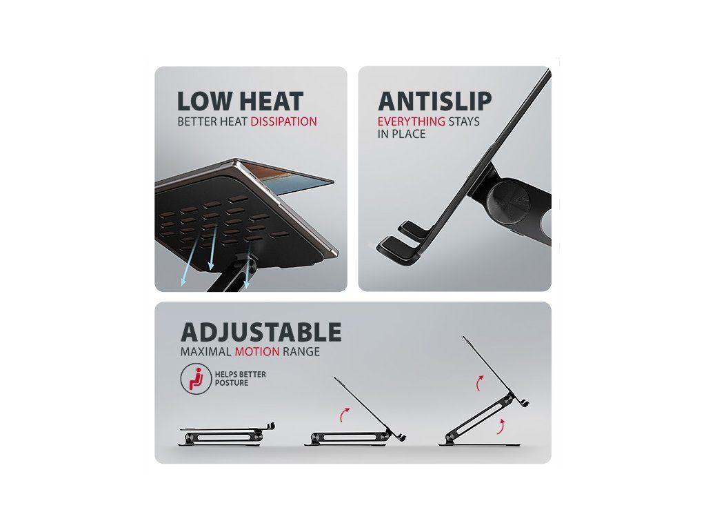 AXAGON STND-LQB hliníkový HQ stojan na notebook 10''-17.3'' nastaviteľná výška a uhol, čierny