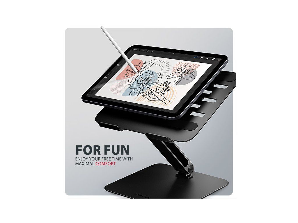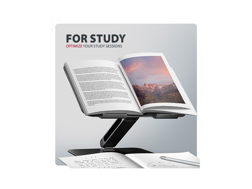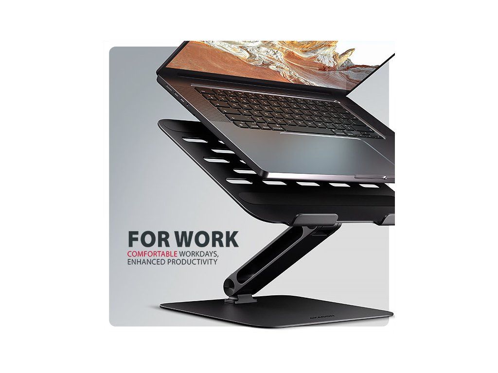 AXAGON STND-LQB je stojan s dvěma klouby na notebook či tablet, který zajišťuje pohodlí a zlepšuje ergonomii při práci. Tento stojan je ideální pro zařízení od 10'' do 17.3''. Kloubový mechanismus umožňuje nastavit libovolnou kombinaci výšky a úhlu. Snadno tak najdete ideální sklon stojanu pro maximální uvolnění vašich krčních a zádových svalů. Užijte si komfortní pracovní prostředí s kompaktním a přenosným stojanem, který se dokonale přizpůsobí vašim potřebám, ať už pracujete doma, v kanceláři, nebo na cestách. Podstavec je vyroben z robustních hliníkových odlitků garantujících dlouhou životnost a spolehlivost. Díky protiskluzové úpravě se nemusíte obávat nežádoucích pohybů – vaše zařízení zůstane pevně na svém místě, a to bez poškození povrchu notebooku či podložky. Tyto pečlivě navržené vlastnosti zaručují perfektní stabilitu pro váš notebook, tablet nebo dokonce oblíbenou knihu, což vám poskytne klid a pohodlí při každodenním používání. Velkou výhodou je chytré řešení s dvojitým kloubem, které umožňuje plynulé nastavení výšky obrazovky notebooku tak, aby byl v jedné rovině s vaším externím monitorem. Tím získáte další pracovní plochu ve správné úrovni očí, což výrazně zlepšuje ergonomii a pohodlí při práci, a zároveň zvyšuje vaši produktivitu. Stojan lze snadno složit do kompaktních rozměrů, což umožňuje pohodlné přenášení kamkoli potřebujete. Jeho elegantní design v černé barvě nejen stylově doplní váš pracovní stůl, ale také přináší praktické funkce, které oceníte při každodenním používání. Výřezy v podstavci zajišťují optimální odvod tepla z vašeho notebooku, čímž zvyšují jeho výkon a životnost. Díky promyšlené konstrukci můžete snadno upravit úhel náklonu, a to i s právě používaným zařízením, pro maximální pohodlí a efektivitu při práci. Vlastnosti: • Lehká a pevná kovová konstrukce. • Protiskluzová úprava, která zároveň chrání zařízení od poškrábání. • Vhodný pro 10''–17.3'' notebooky, nebo jiná zařízení. • Nastavitelná výška až 205 mm. • Mnoho nastavitelných poloh. • Nastavení sklonu plochy pro notebook (0–180°). • Nastavení sklonu ramene (0–180°). • Nosnost dimenzována pro všechny typy notebooků, max. 5 kg. • Skladný a lehce složitelný. • Držák notebooku umožňuje lepší odvod tepla. • Rozměry: 280 × 255 × 54 mm (Š × H × V). • Hmotnost: 1065 g. Balení v kartonové krabičce obsahuje: • Stojan na notebook/tablet, • černá verze provedení.Dodatočné parametre