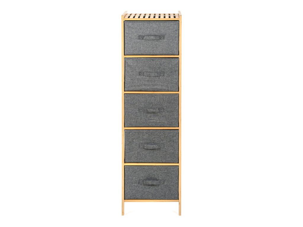 Praktický stojan s 5 výsuvnými textilnými košíkmi ušetrí veľa miesta a uložíte doň všetko, čo potrebujete. Potreby na pranie alebo kozmetiku, oblečenie aj detské hračky. Každý košík má objem 21 litrov, šírka je 33 cm, výška 19 cm a hĺbka 35 cm. Celý stojan má výšku 1,20 m.