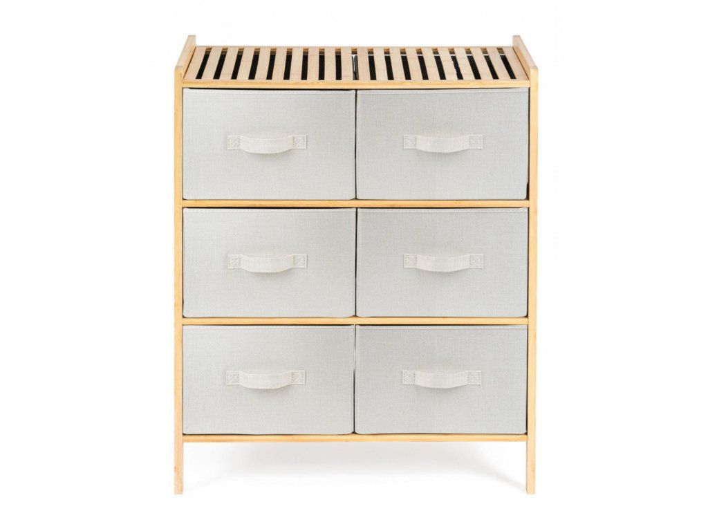 Praktický stojan so 6 výsuvnými textilnými košíkmi ušetrí veľa miesta a uložíte doň všetko, čo potrebujete. Potreby na pranie alebo kozmetiku, oblečenie aj detské hračky. Každý košík má objem 20 litrov, šírka je 31 cm, výška 19 cm a hĺbka 35 cm. Celý stojan má na výšku iba 78,5 cm.